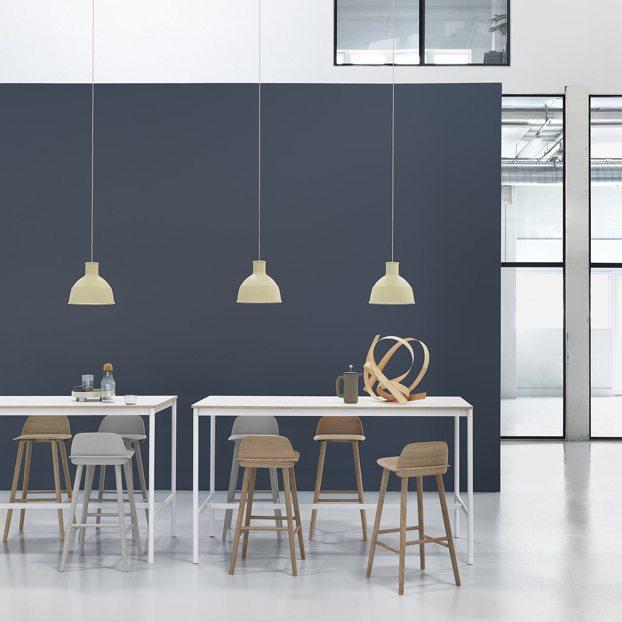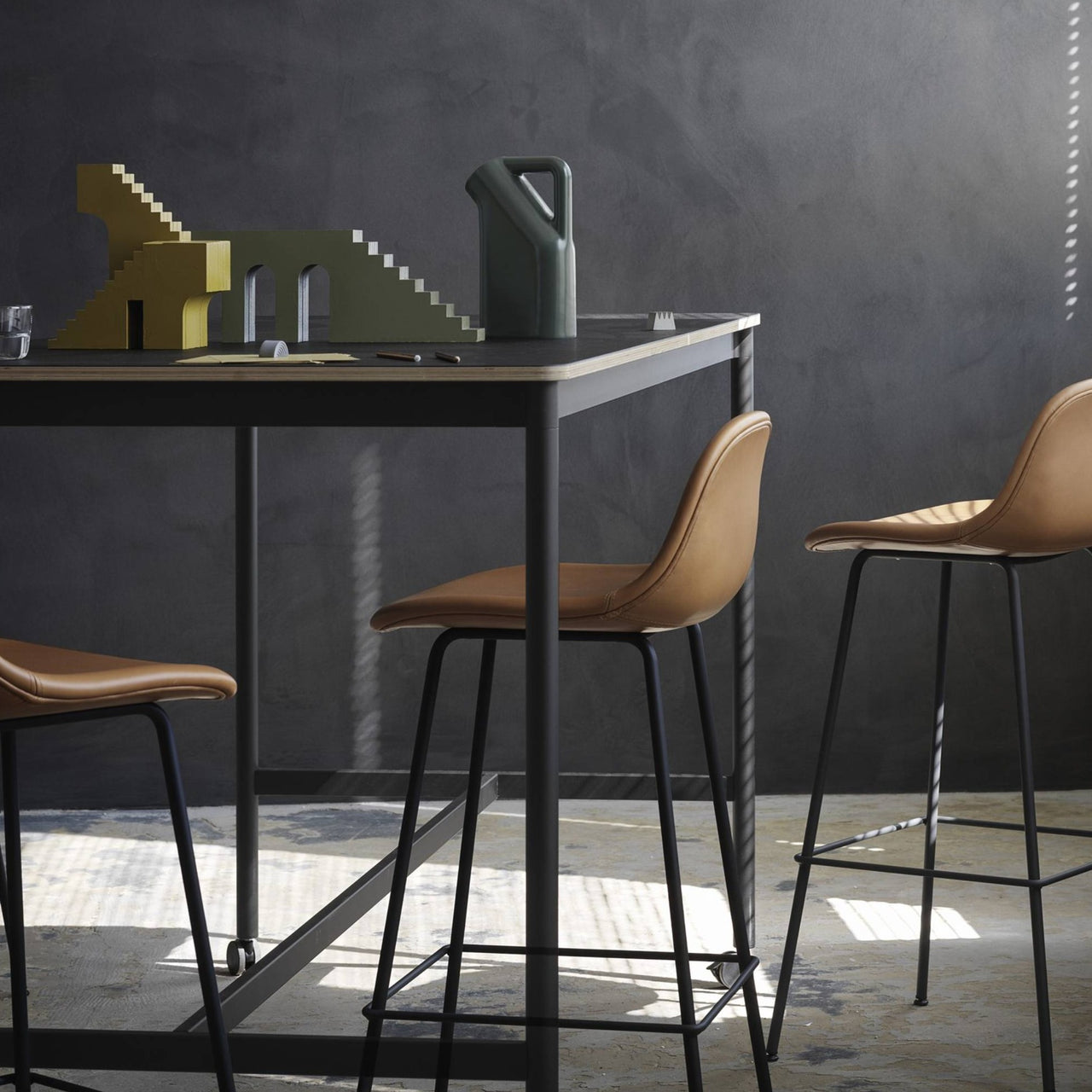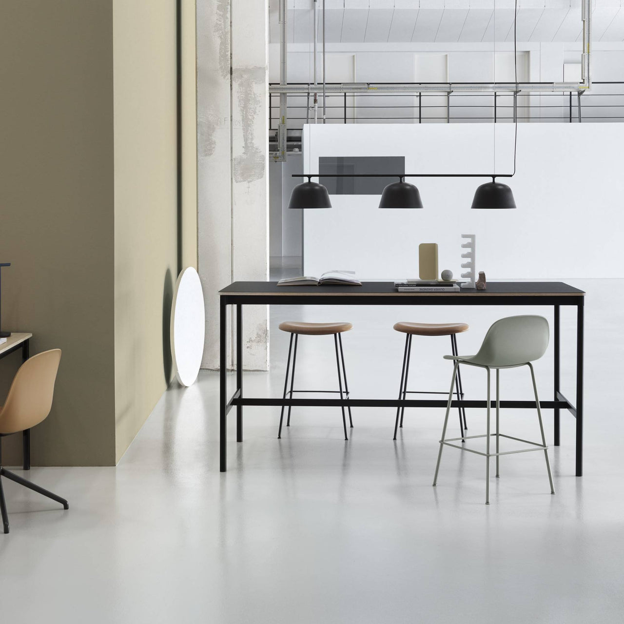 Ideal as a standing desk, bar table or extra counter, Muuto sizes up with this version of Finnish designer Mika Tolvanen’s deceptively slim and lightweight Base Table. An extruded aluminum frame assures a workhorse sturdiness and the table is finished with extra-durable acrylic paint. With tabletop in either laminate or linoleum surface, there are variations to suit a host of interiors and uses.