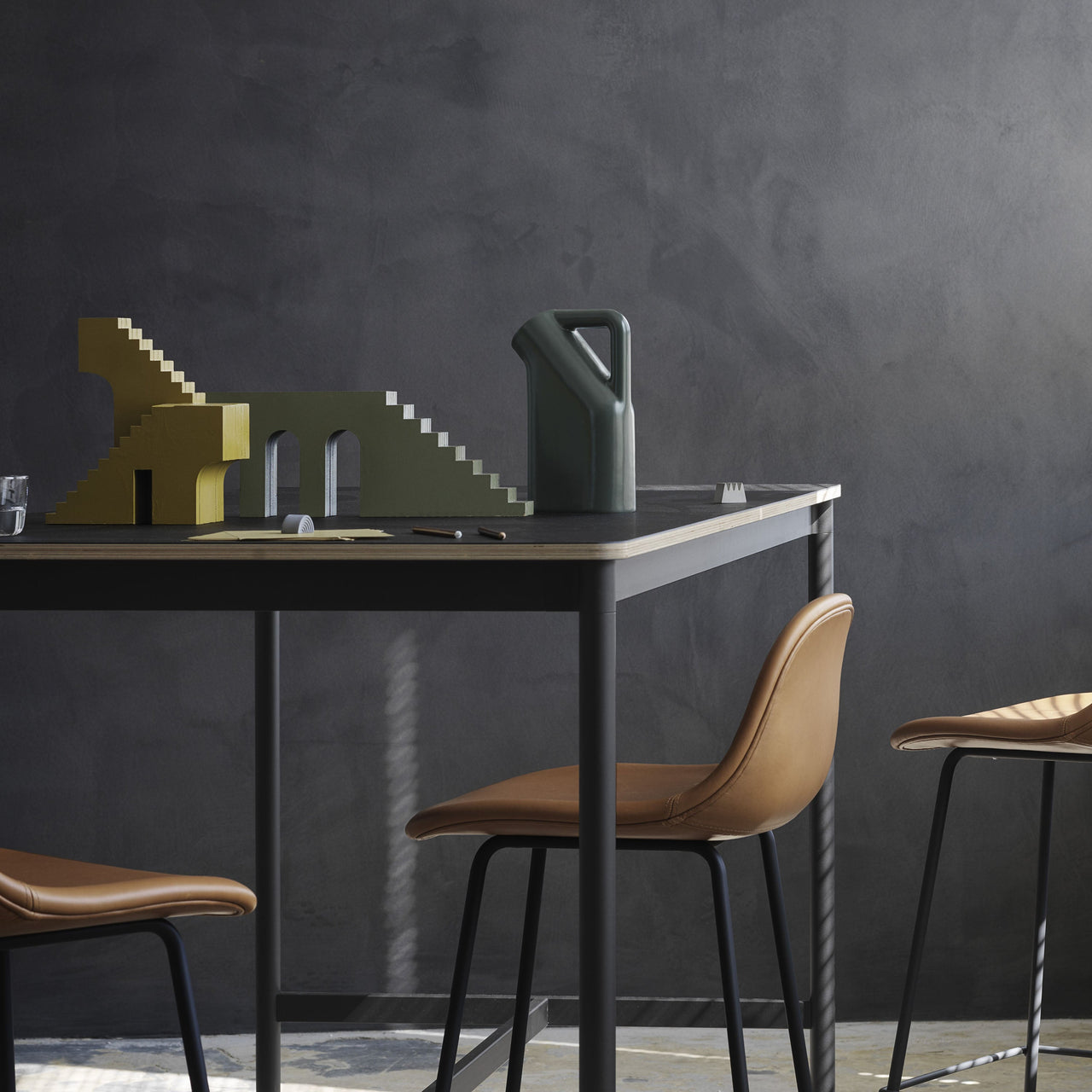 For completely mobility, Mika Tolvanen adds lockable castors to this raised version of his versatile Base Table. Coming in 2 tabletop widths and either bar or counter height, his signature slim design has everyday durability from its sturdy but lightweight construction in extruded aluminum with a painted acrylic finish. For the tabletop, choose from laminate with matching ABS or plywood edges or alternatively linoleum or oak veneer with plywood for options to suit any setting.