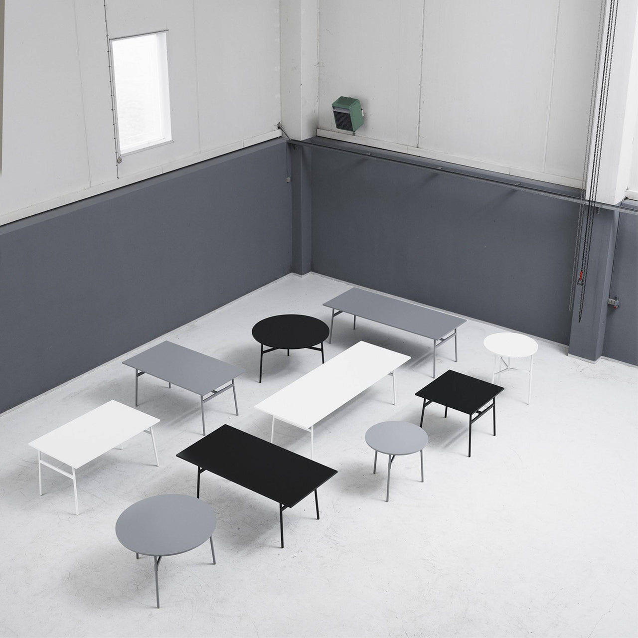 Union’s name hints at its versatility as a gathering place for mealtimes, work or simply relaxed conversations. Designer Simon Legald’s prototypical version displays all the attributes of the series, starting with the tabletop rendered in a premium anti-scratch, anti-fingerprint laminate. The H-frame steel base is powder-coated to match, with brass fittings. Union comes flat-packed and is designed for easy assembly.