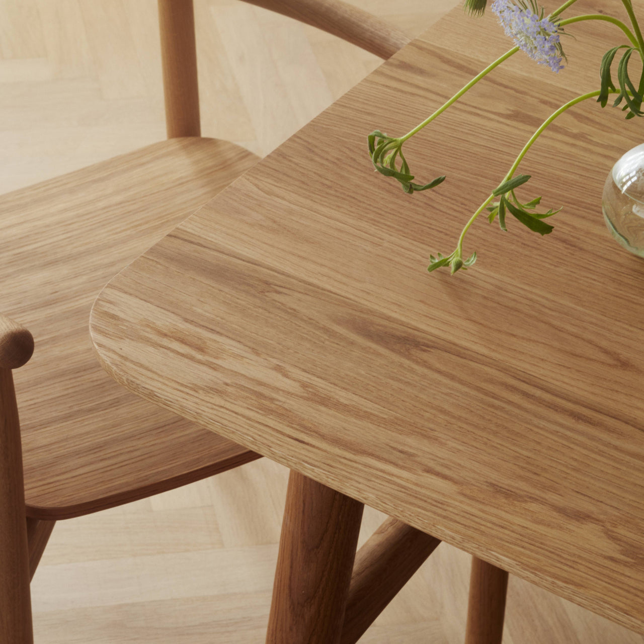 Designer Anton Björsing’s Hven collection encompasses a superb dining table that glories in Scandinavian woodcraft with its stunning grain pattern. Fashioned in solid oak from FSC-certified resources, the table’s virtues also include long-wearing durability and a versatility that suits a variety of interiors. Generously proportioned in either of its 2 sizes, Hven is also airily scaled and finessed with rounded corners and legs.