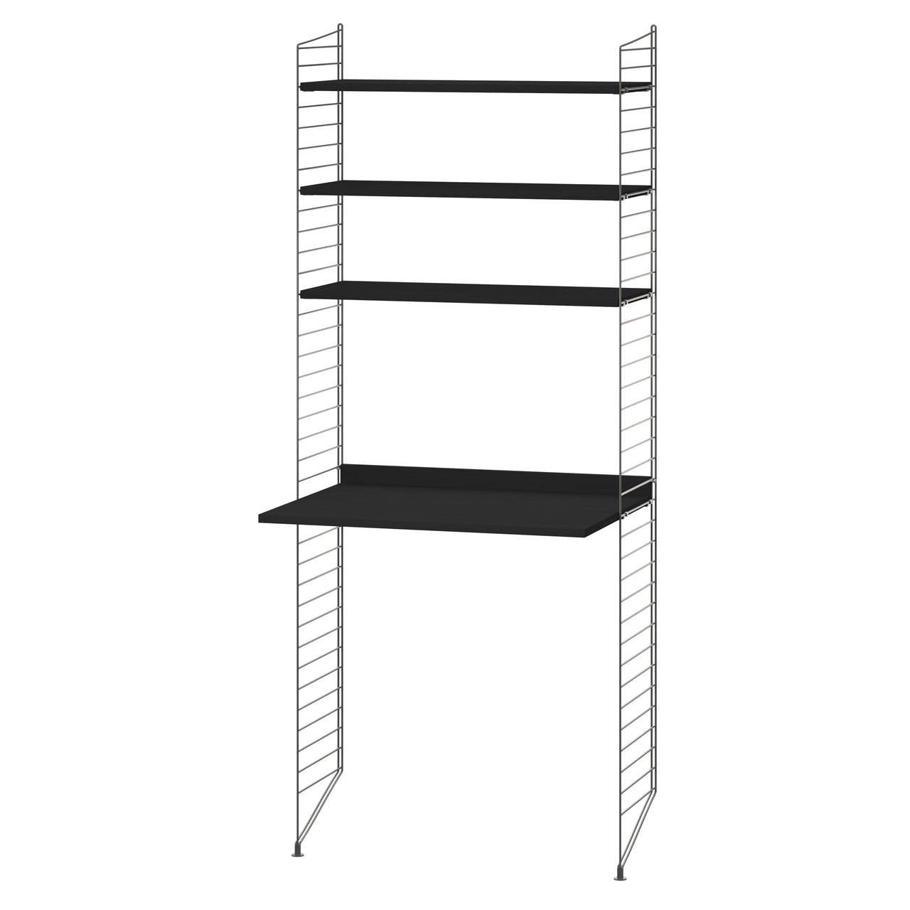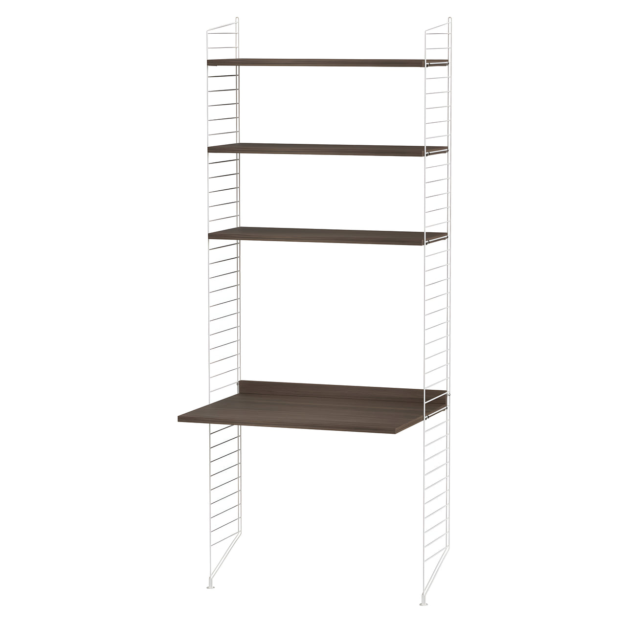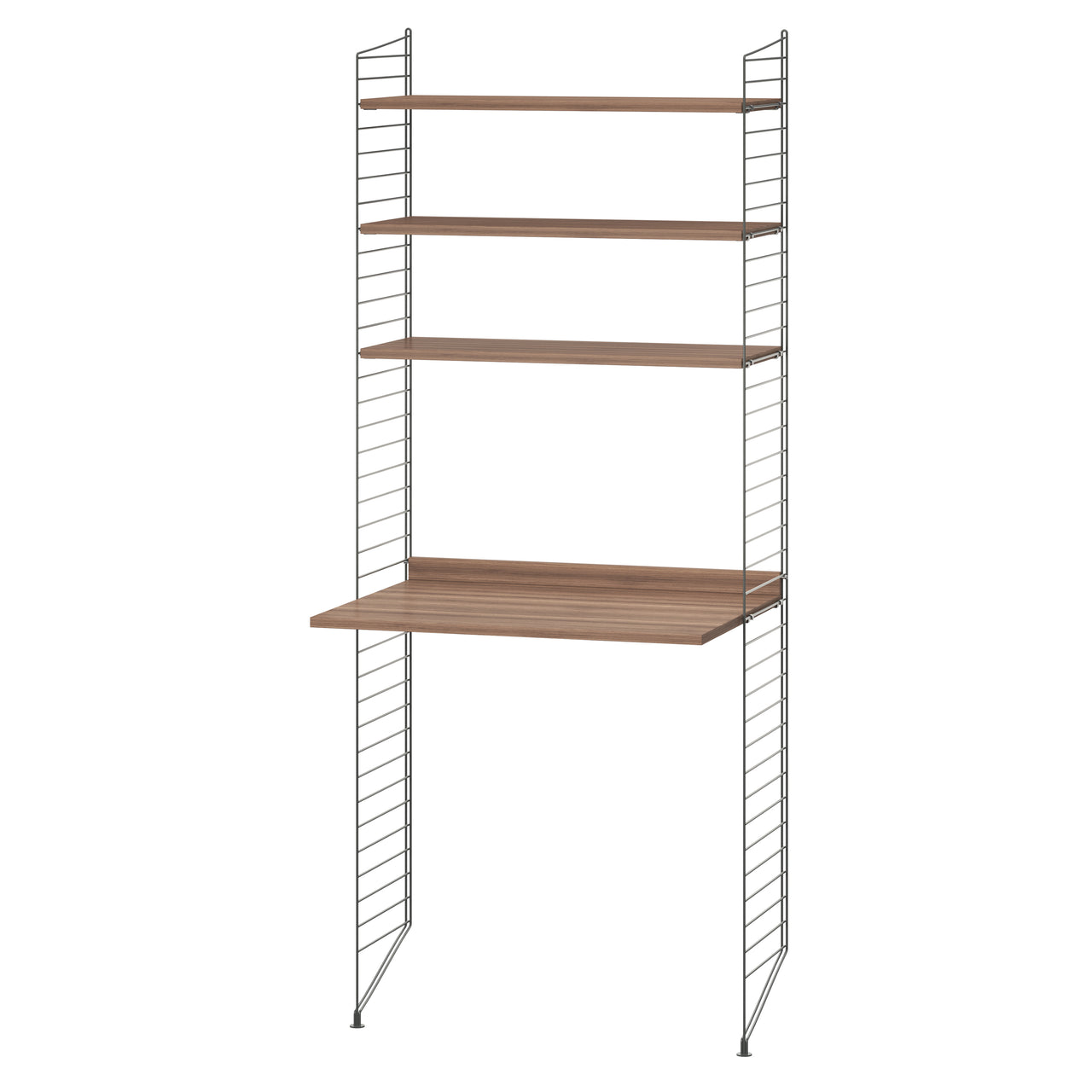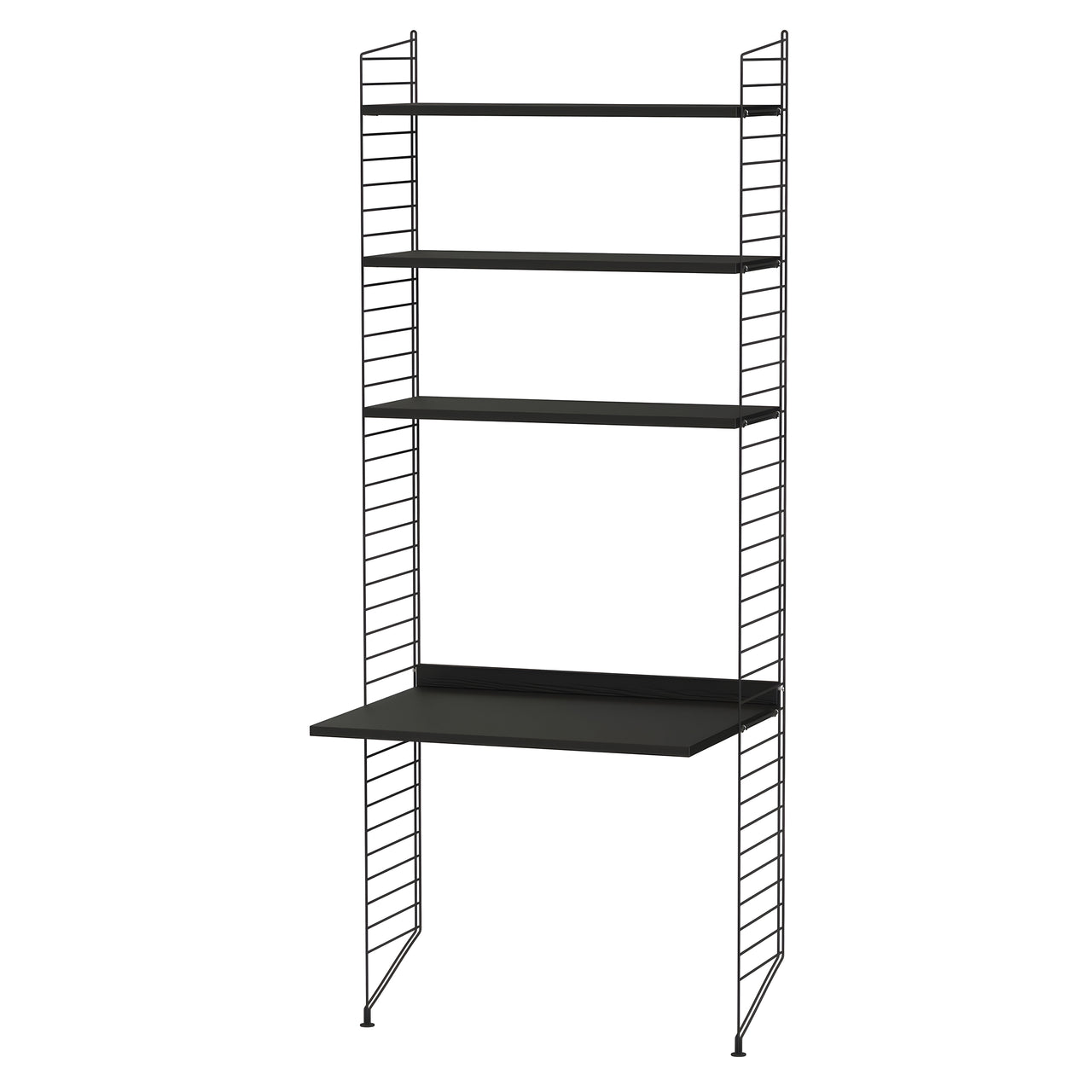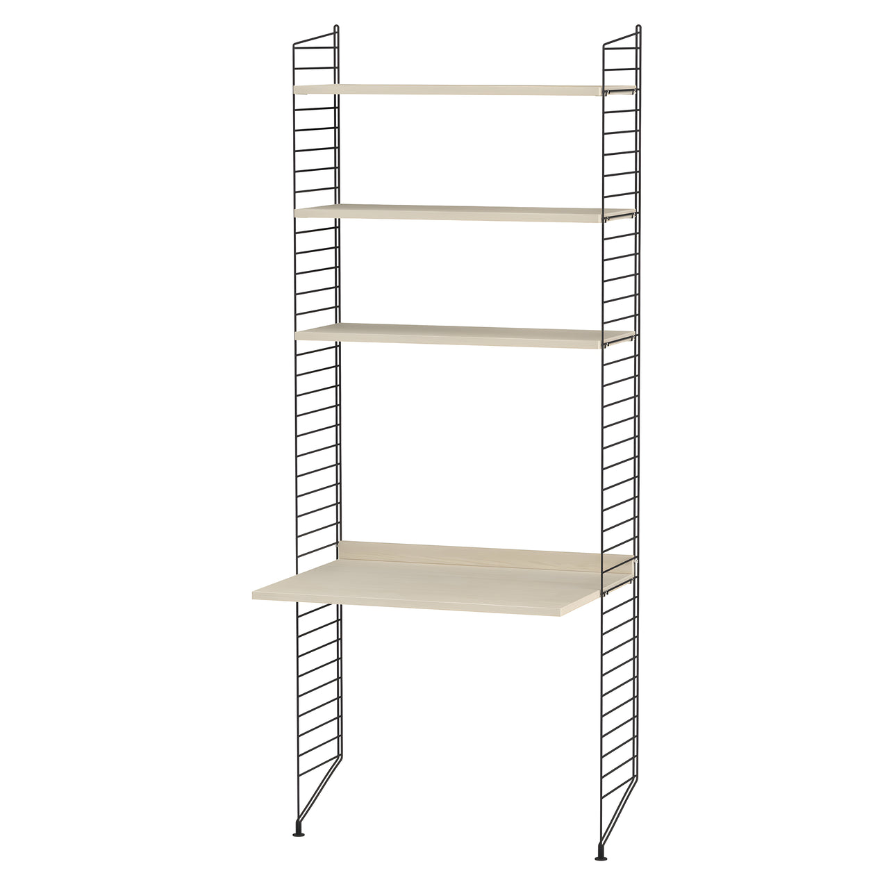 For office or home, this floor-mounted String single bay maximizes a limited workspace. Combining 3 spacious upper shelves and an extended desktop in the familiar coated-wire structure, it's available in the collection’s full range of woodgrain veneer and painted finishes. String's series of pre-arranged bundles is also infinitely expandable as needs change in the future—another testament to the genius of Nisse Strinning's enduring 1949 modular system.