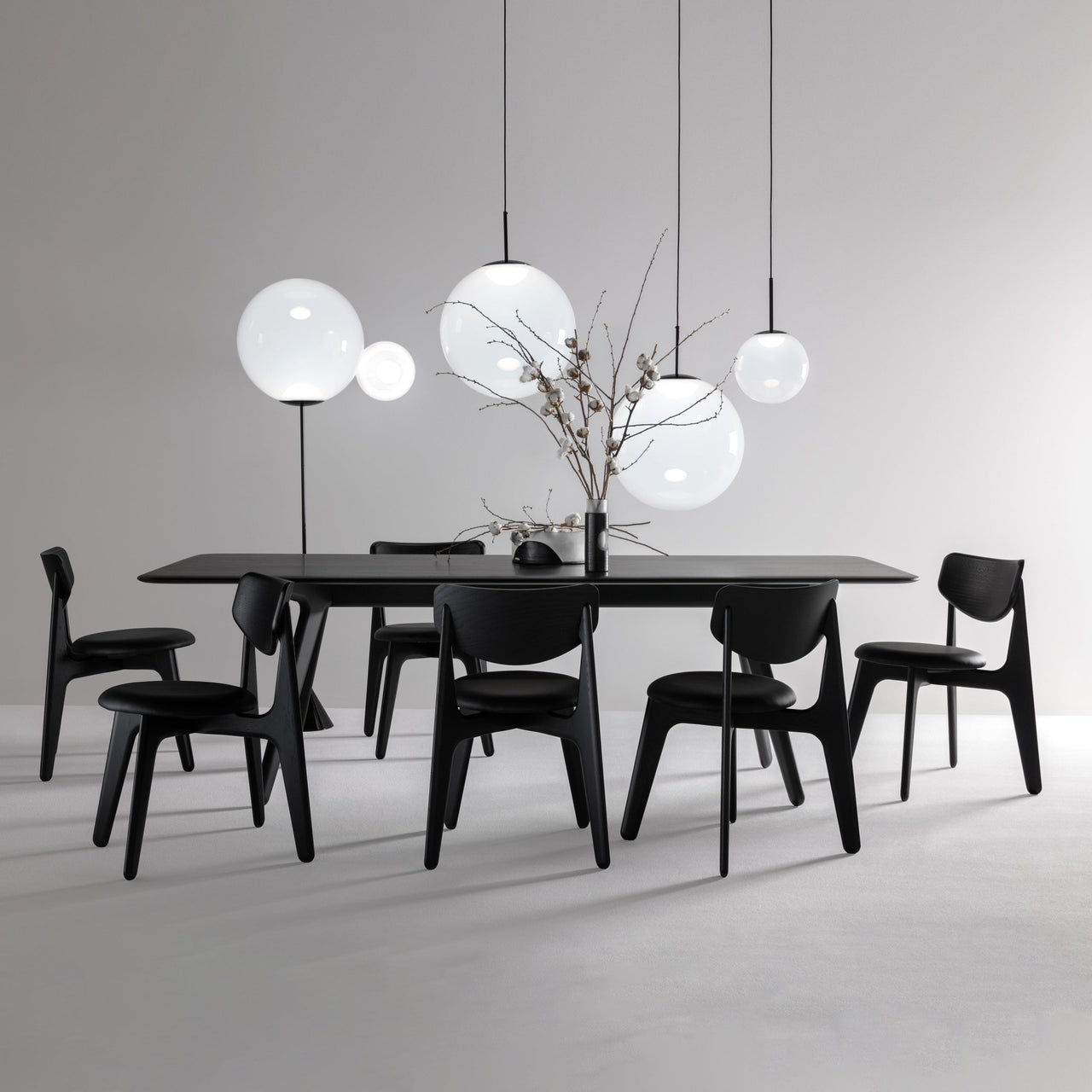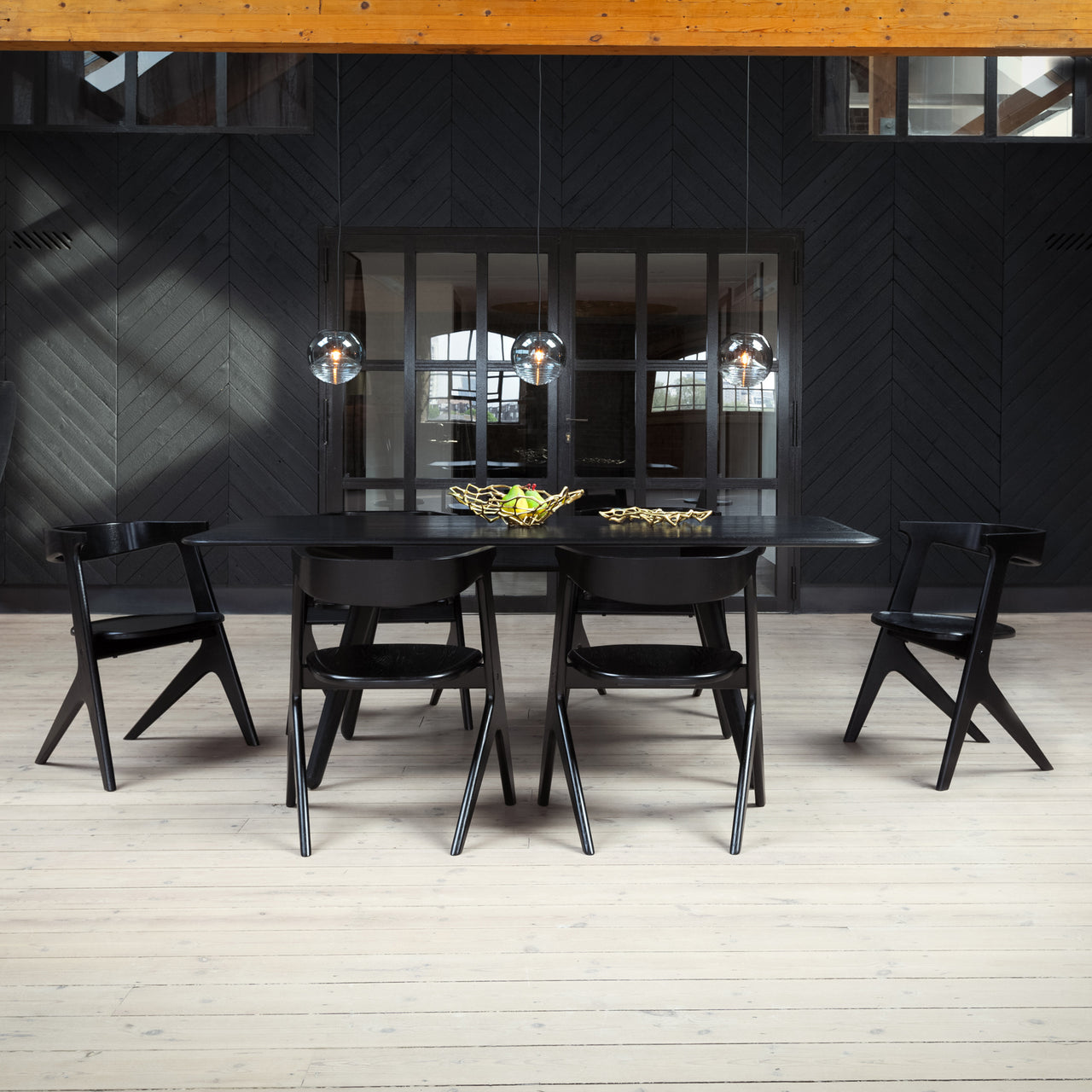 Brit designer extraordinaire Tom Dixon works all the angles with his Slab Dining Table, an all-wood stunner that celebrates the natural beauty of oak. In natural, fumed or black lacquer finish, his minimalist take on geometry is gutsy yet invitingly refined, with generous proportions, and softened with a gentle radius edge. The Slab family is made from solid oak, sourced from sustainably managed forests, and the brushed surface plays up the beauty of the wood grain.