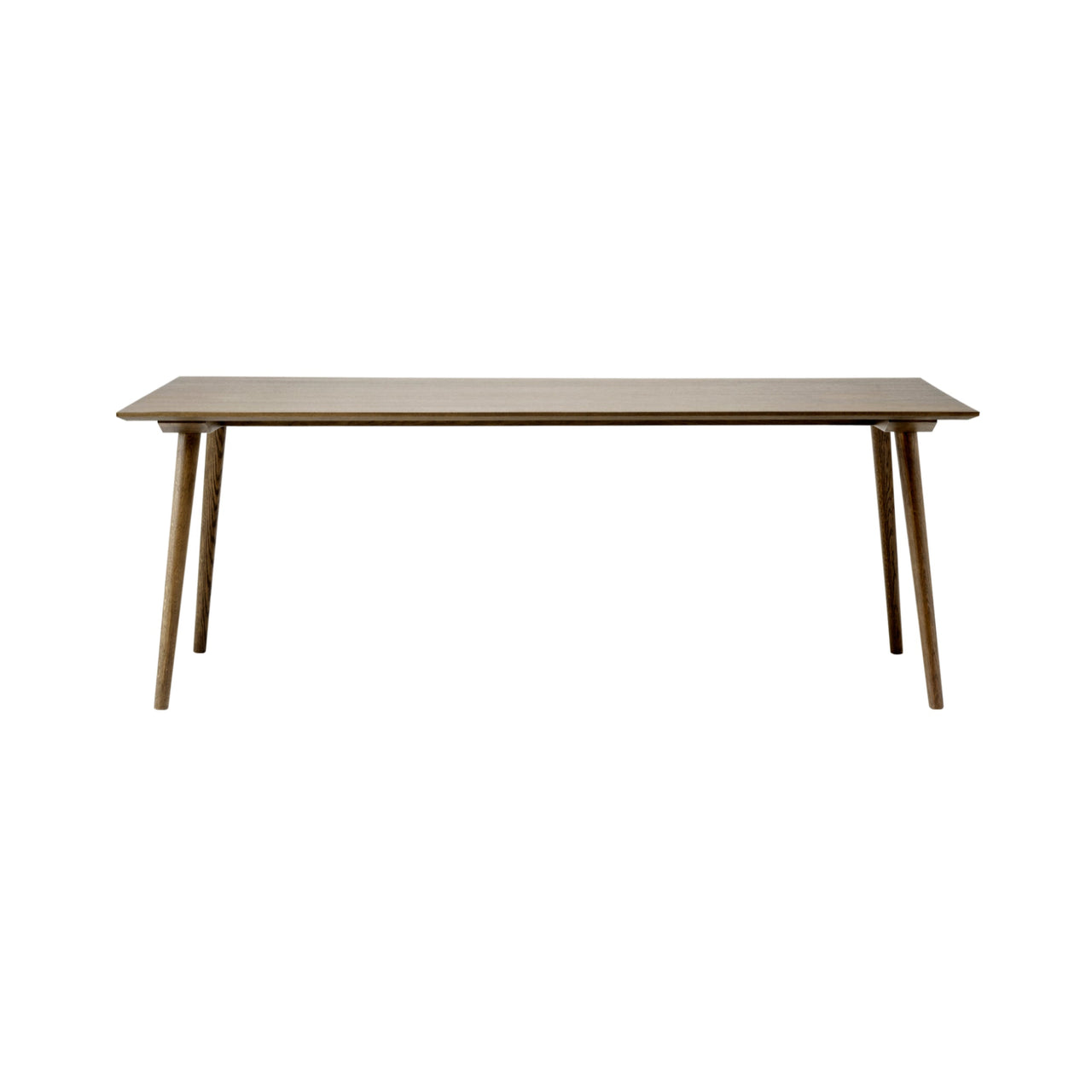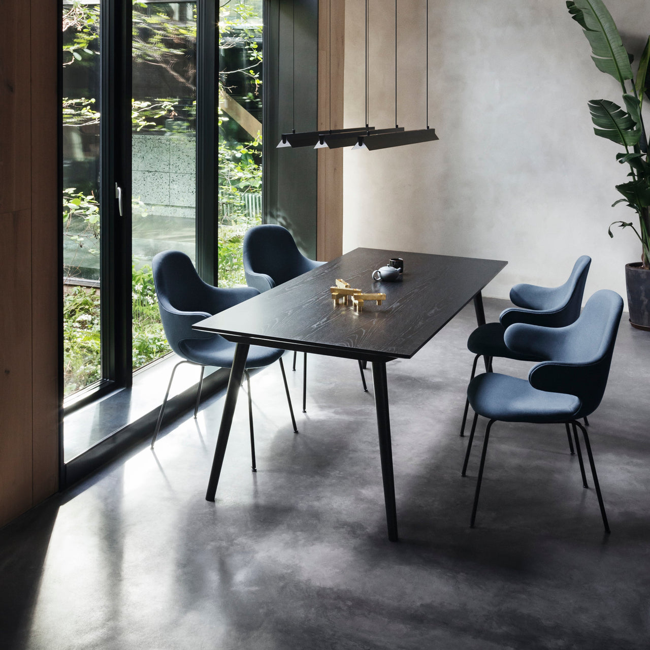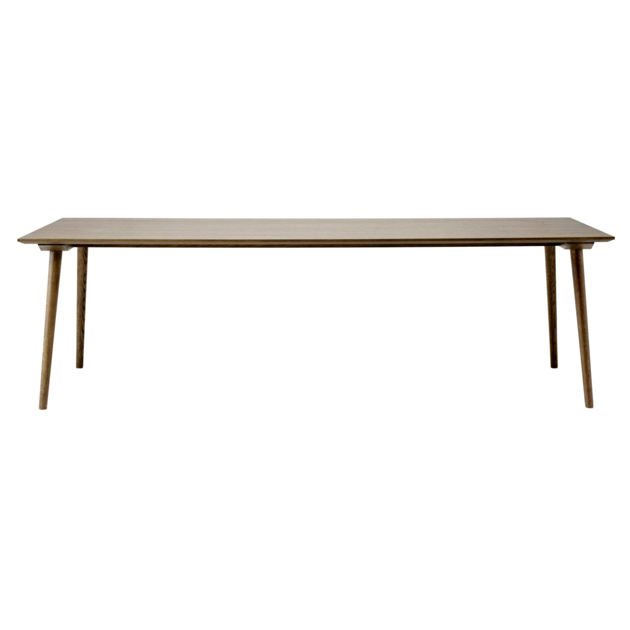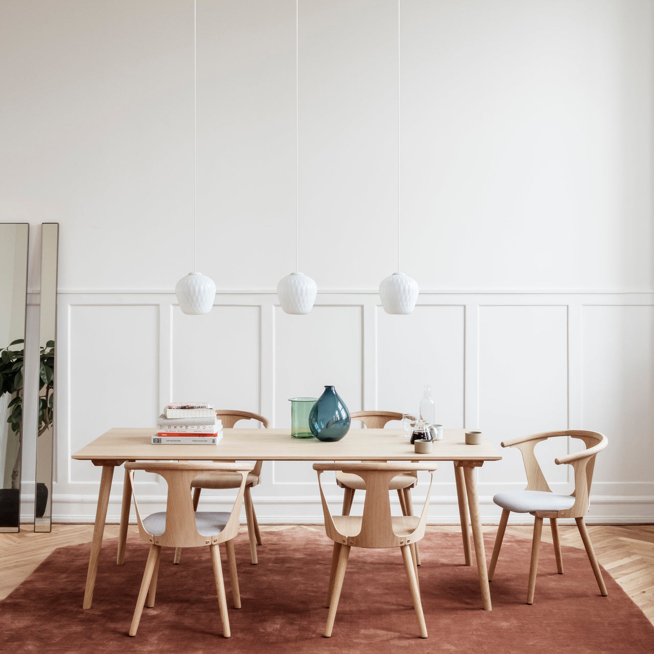 With his solid oak In Between Table, Finnish-born designer Sami Kallio explores how an object interacts with its surrounding space. The slim silhouette and absence of ornamentation make it an ideal match for any chair—and especially suited to his companion In Between Chair, as the legs of the table echo the angle of the front legs of the chair. Such faultless simplicity is achieved through a combination of traditional hand craftsmanship, involving compression molding and woodturning, and innovative modern veneer techniques. Rectangular version available in two sizes. Copenhagen-based &Tradition's Martin Kornbek Hansen lauds Sami's "uncanny ability to design an object so simple, it exudes beauty.