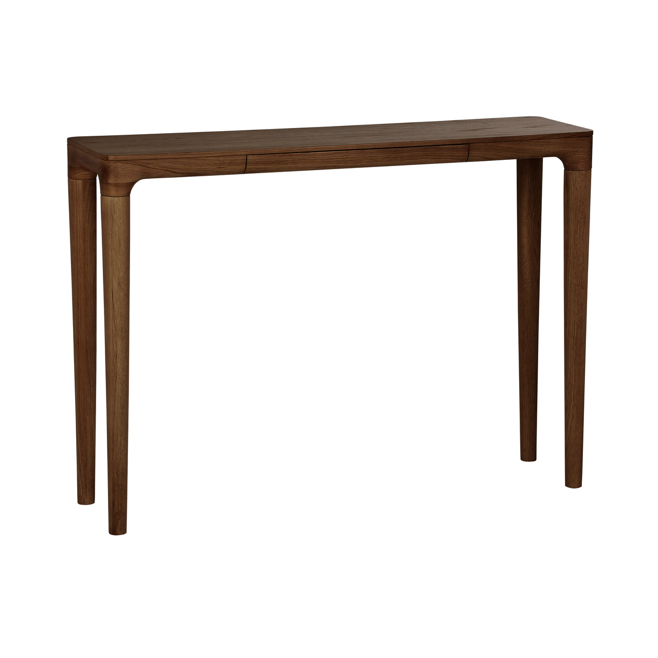 The Heart 'n' Soul Console Table features a fabric-inlaid drawer, providing a discreet storage solution for essentials like keys and wallets. Designed by Søren Ravn Christensen, co-founder of Umage, this piece reflects his commitment to functional and thoughtful craftsmanship. Available in oak, dark oak, and black oak finishes, with options for FENIX® nanolaminate tops in cloud grey, moss green, and obsidian black, the table offers exceptional resistance to scratches, stains, and impact.
