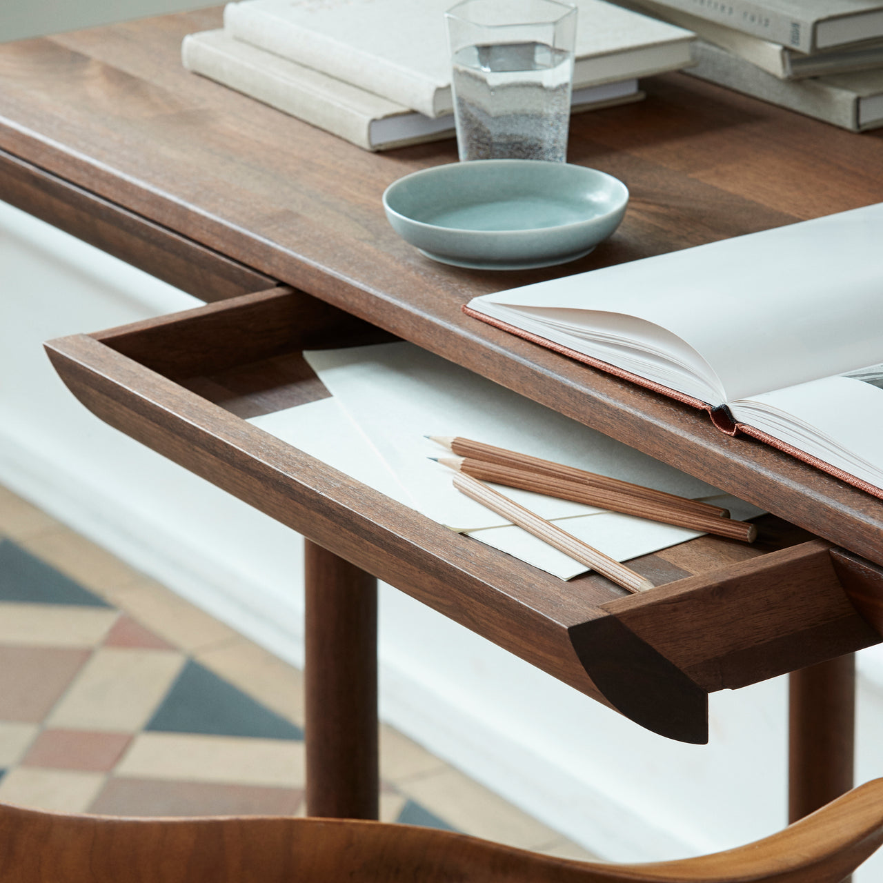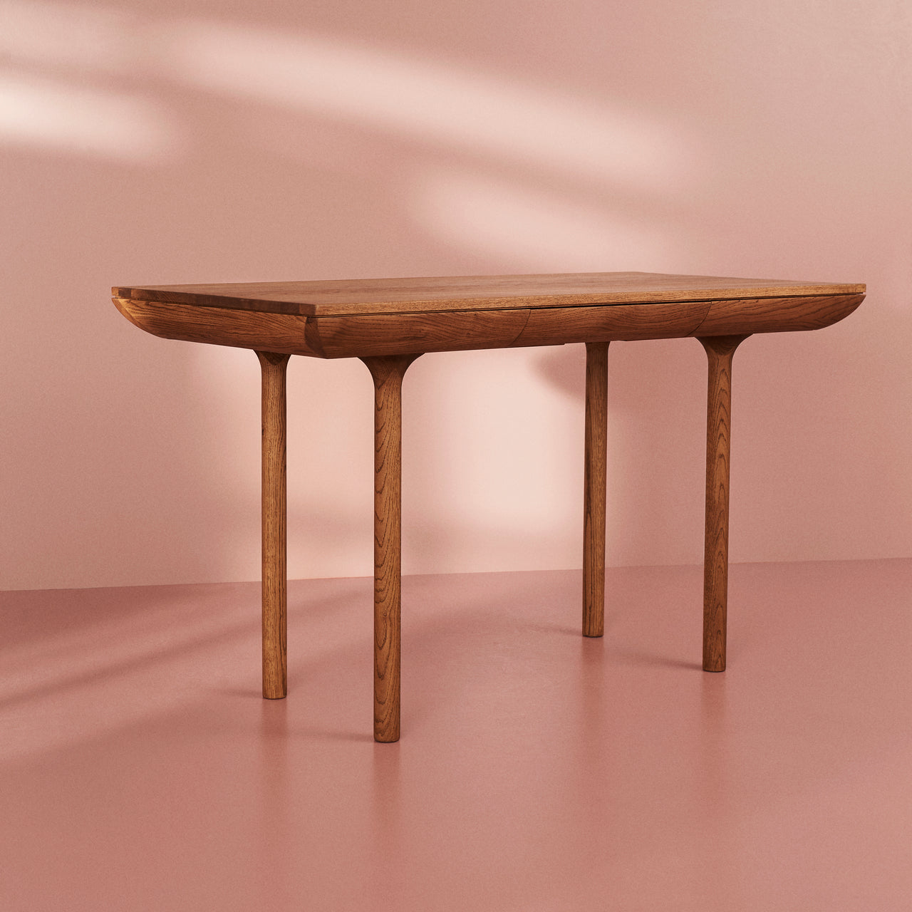 With a distinctively sculpted look, Rune Desk puts the emphasis on the materiality of its wood construction in a choice of oiled and smoked finishes. Danish designer Isabel Ahm’s desk can also be used as a dining table in smaller confines and a front drawer integrated into the rounded top conveniently stores working supplies and paper or placemats and napkins.