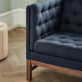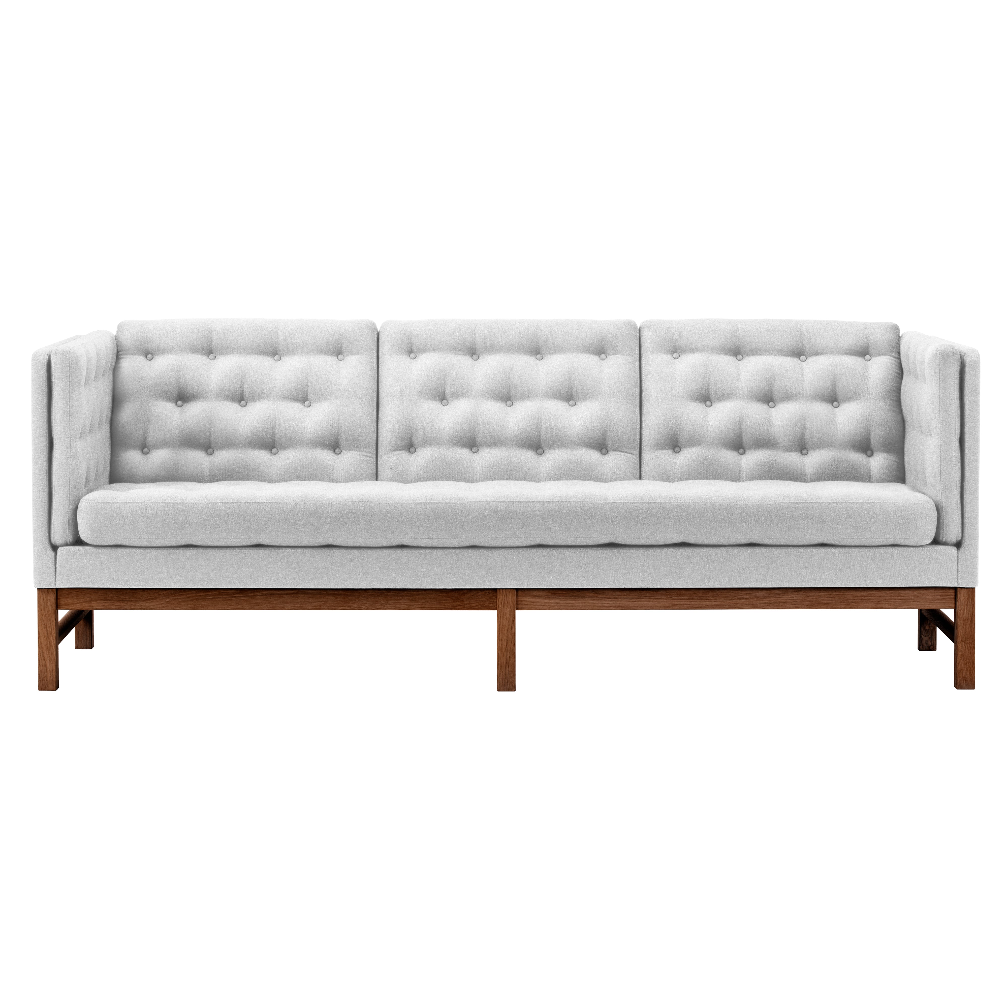 In a 2-seater version, like its smaller sibling sofas, Fredericia's EJ315 is a beloved Danish exemplar with a structured yet highly comfortable profile. Hand-sewn buttons and the geometry of oak or walnut framing bring a graphic dimension to Erik Ole Jørgensen's beautifully crafted mid-70s design. Factor in the depth and dimension of the cushions conceived to ensure the utmost utility and the result is an enduringly iconic sofa, available in a wealth of fine fabric and leather upholstery selections.