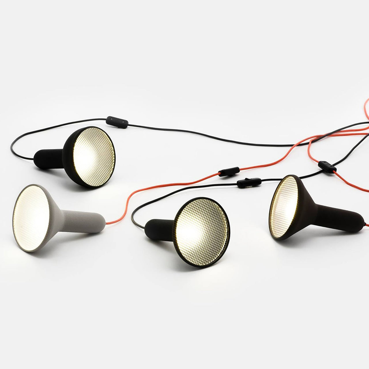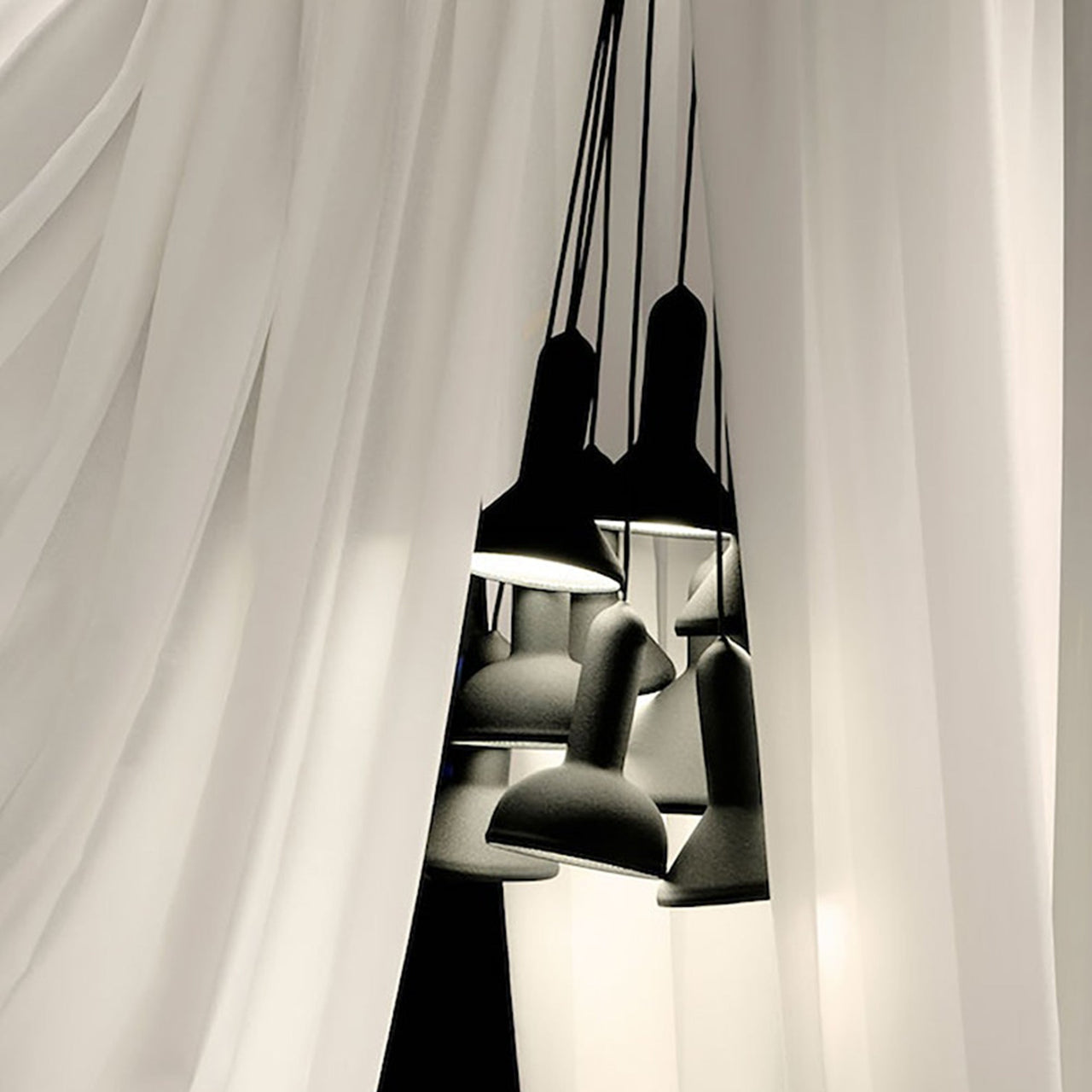 Belgian design star Sylvain Willenz redefines the typical torch in PVC dipped-polymer for this LED pendant. Torch Light’s diamond-textured diffuser cleverly references a car’s headlights while the lightweight shade comes in 3 crisply varied shapes. Made for mixing and matching—with a wide array of colors and sizes—the light is available with a custom cable drop to accommodate varied ceiling heights.