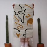 A team of Oaxaca-based artisans collaborate on not only the weaving of the rugs, but the all the wool textiles wholly made there. Now based in Los Angeles, Jezarely visits the southwestern Mexican state of Teotitlan del Valle, and works remotely with the team there. Each rug is hand made from start to finish using natural and local resources, from one-of-a kind dyes and pigments—and all with minimal waste and carbon footprint. For this reason, customization in sizes and colors is an available option.