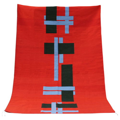 This traditional craftsmanship is given fresh interpretation with the contemporary exploration of shapes and forms that characterize Jezarely’s aesthetic. The graphic patterns further draw from the geography and other details that inspire her. It’s a sensibility informed by this Portland-based designer’s expertise in commercial interior design and sustainability. She collaborates directly with rug artisans, encouraging them to set their own wages, and supporting them by facilitating continued creation and methods. This is as much a mission as business for her: “I feel like everyone should know about the beautiful Mexican craftsmanship that Oaxaca, specifically, can do.”