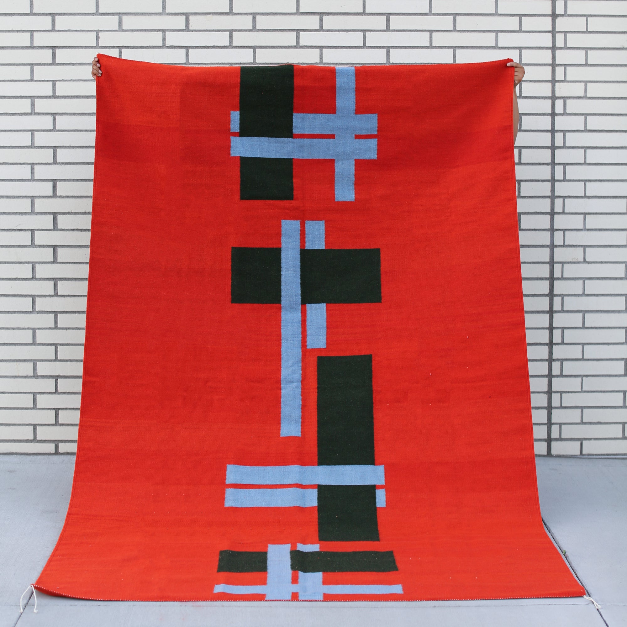 This traditional craftsmanship is given fresh interpretation with the contemporary exploration of shapes and forms that characterize Jezarely’s aesthetic. The graphic patterns further draw from the geography and other details that inspire her. It’s a sensibility informed by this Portland-based designer’s expertise in commercial interior design and sustainability. She collaborates directly with rug artisans, encouraging them to set their own wages, and supporting them by facilitating continued creation and methods. This is as much a mission as business for her: “I feel like everyone should know about the beautiful Mexican craftsmanship that Oaxaca, specifically, can do.”
