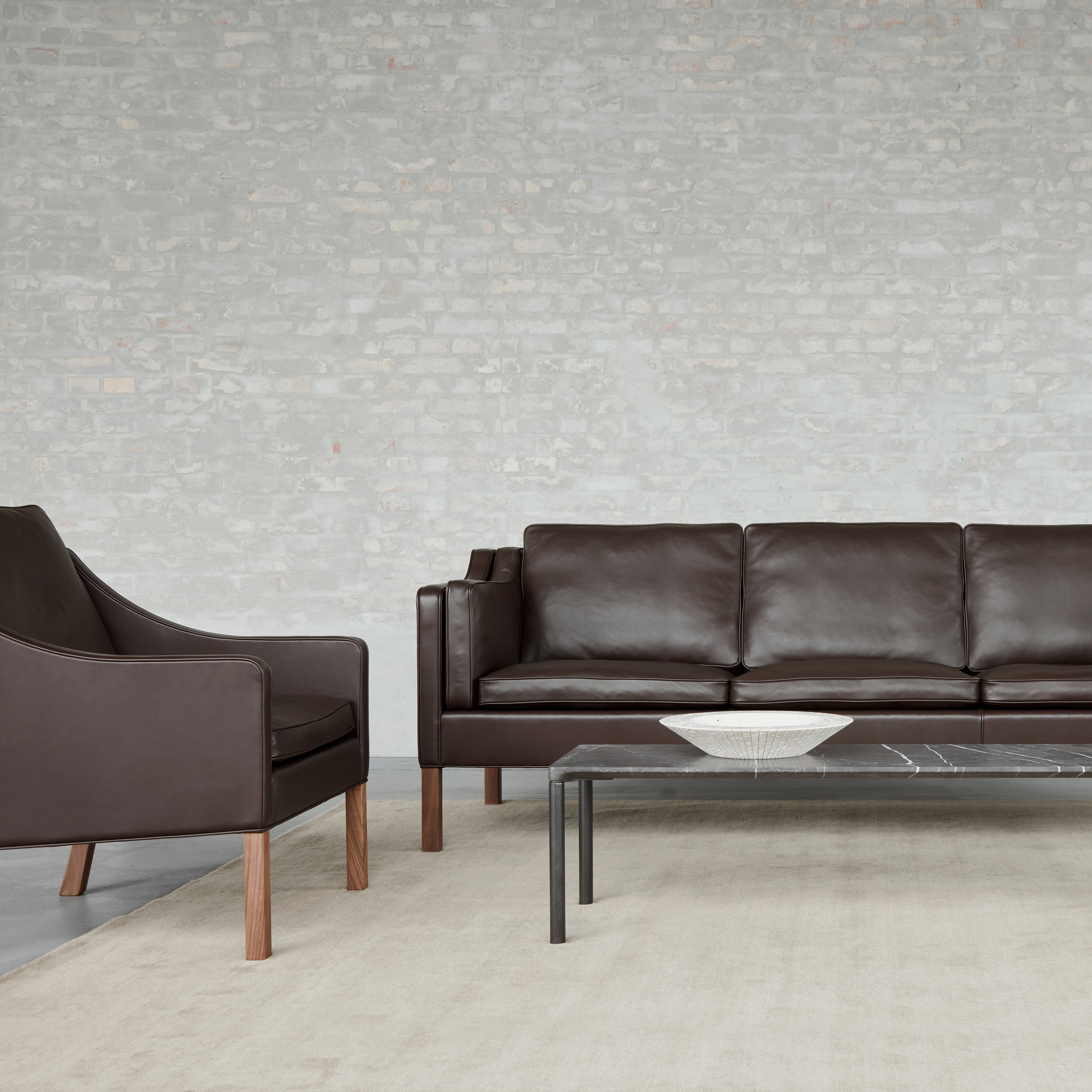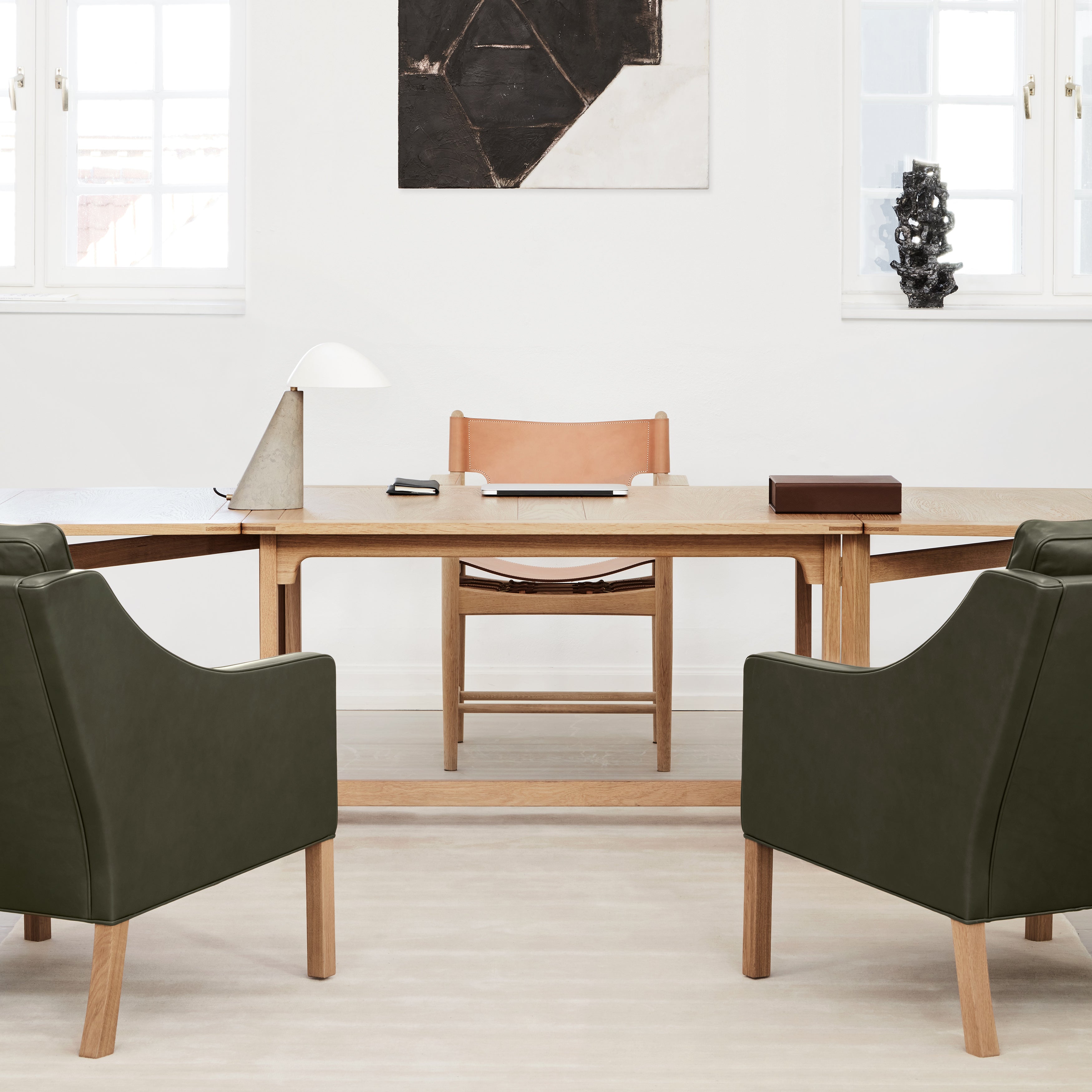 The graceful slope of the armrests, ample seat cushion and slight inclination of the backrest contribute to Mogensen 2207's natural feeling of comfort. An extension of venerable designer Børge Mogensen’s namesake sofa collection, the club chair combines a sharply defined silhouette with a soft, encompassing interior. Rich oak or walnut legs provide additional enhancement to the sumptuous upholstery in a choice of premium leather options.