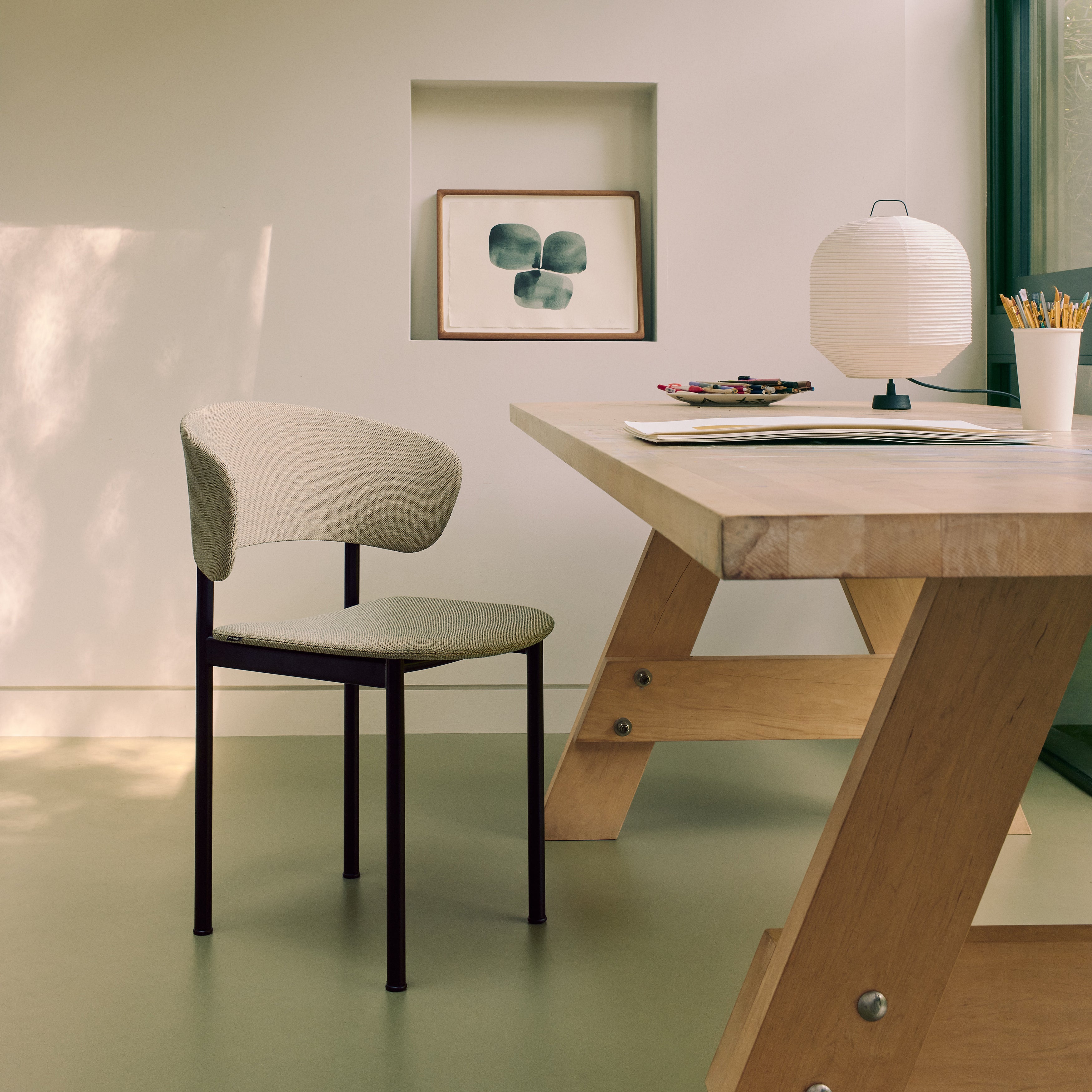 Built on a tubular steel frame, this armchair pairs a fully upholstered seat and backrest with a compact silhouette and broad proportions that support relaxed seating. The structure is designed with separate, disassemblable components, allowing for straightforward maintenance and end-of-life recycling. Multiple finishes and upholstery combinations allow for visual adaptability across settings.