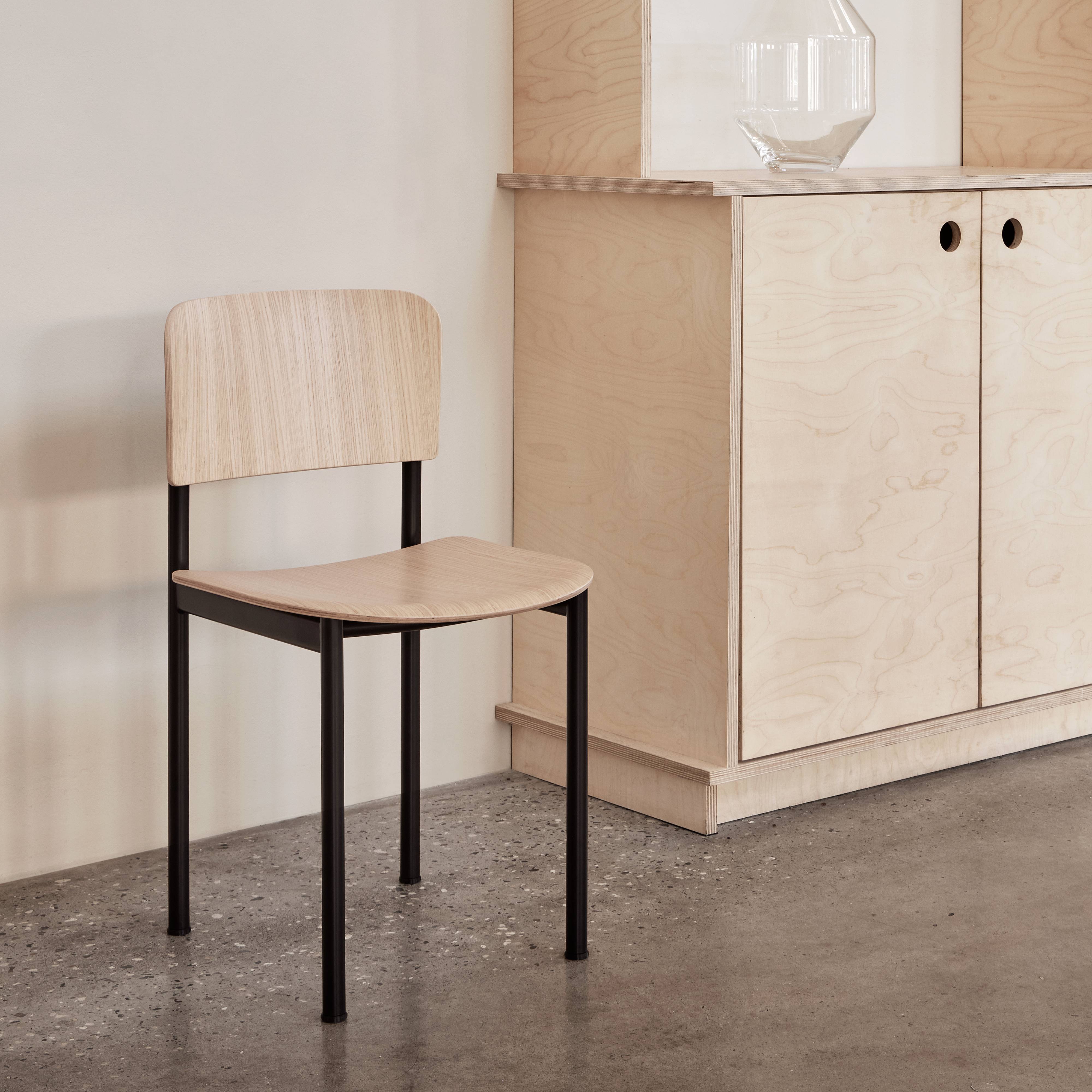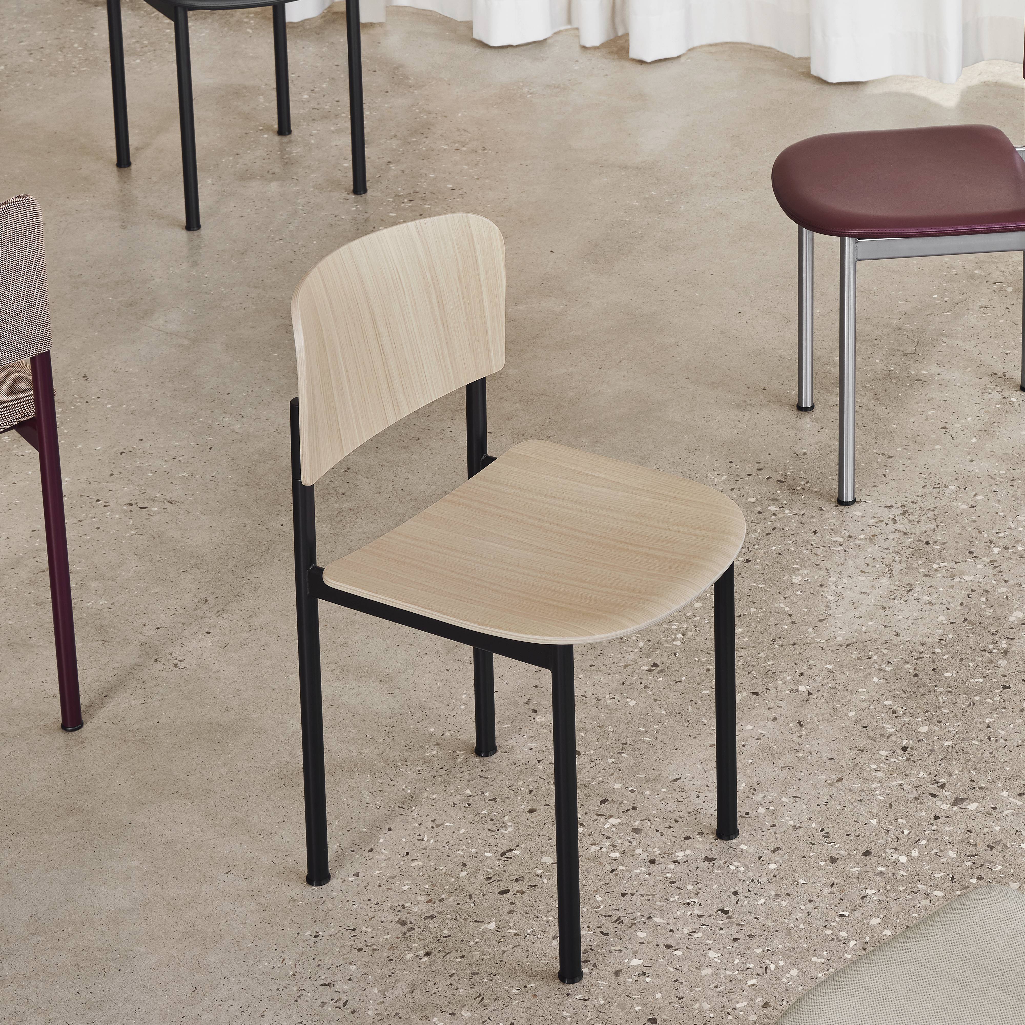 With its surprisingly minimal footprint and generous comfort, Plan is ideal for a variety of uses—in hospitality spaces, the flex-workplace and everyday in the home. Barber & Osgerby’s chair features a plywood veneer seat and back finished with water-based lacquer and a powder-coated tubular steel frame in black, Bordeaux or Modernist green.