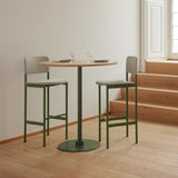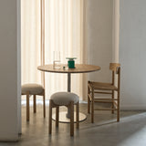 The Plan Column Table features a stable steel column and disc base with a powder-coated finish. Its compact structure fits well in smaller layouts such as cafés or shared spaces. The tabletop comes in round or rectangular shapes and is offered in oak, smoked oak, black laminate, or white Carrara marble. Available in two heights, it is built to suit a range of uses while maintaining a straightforward, durable form.
