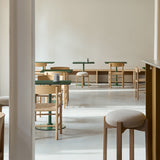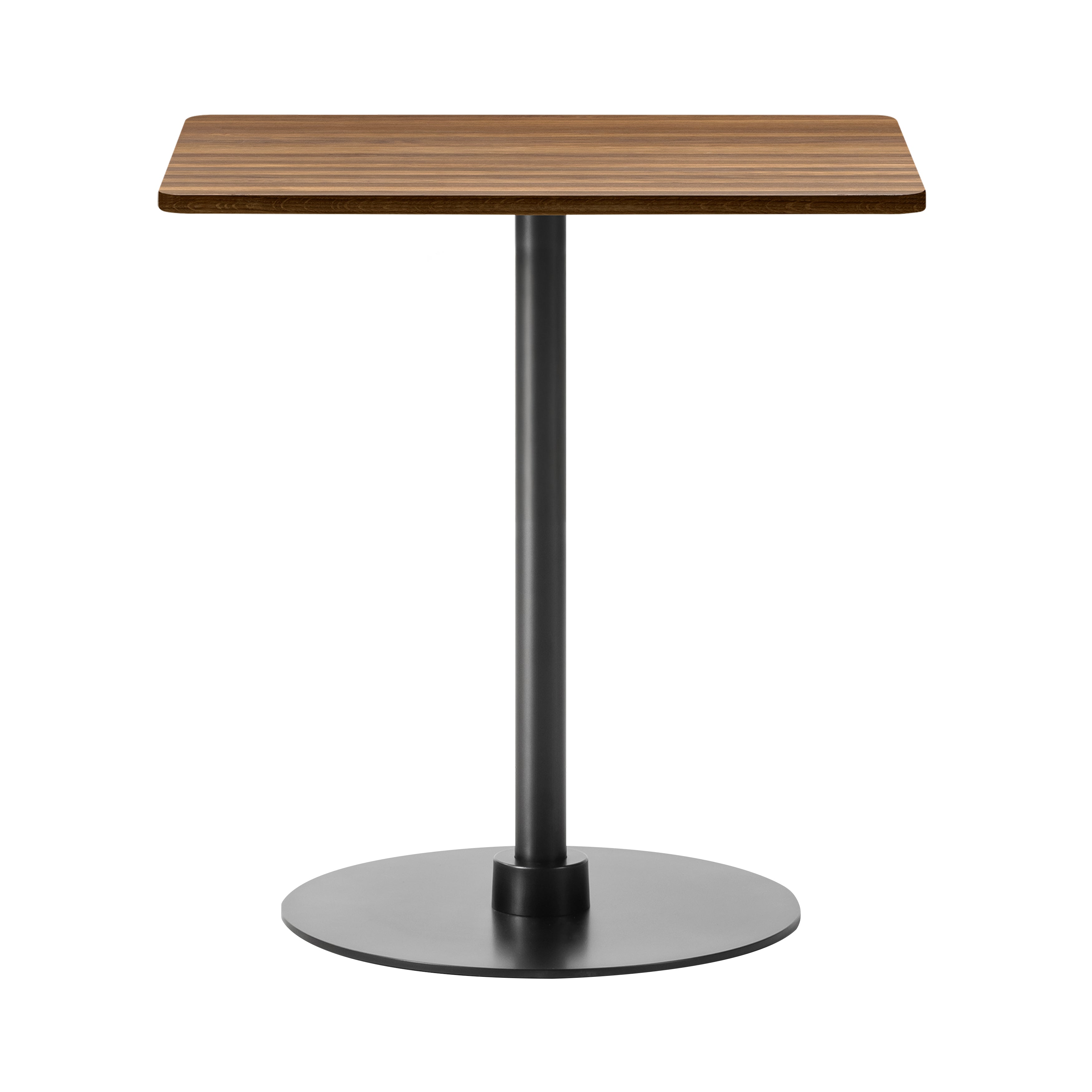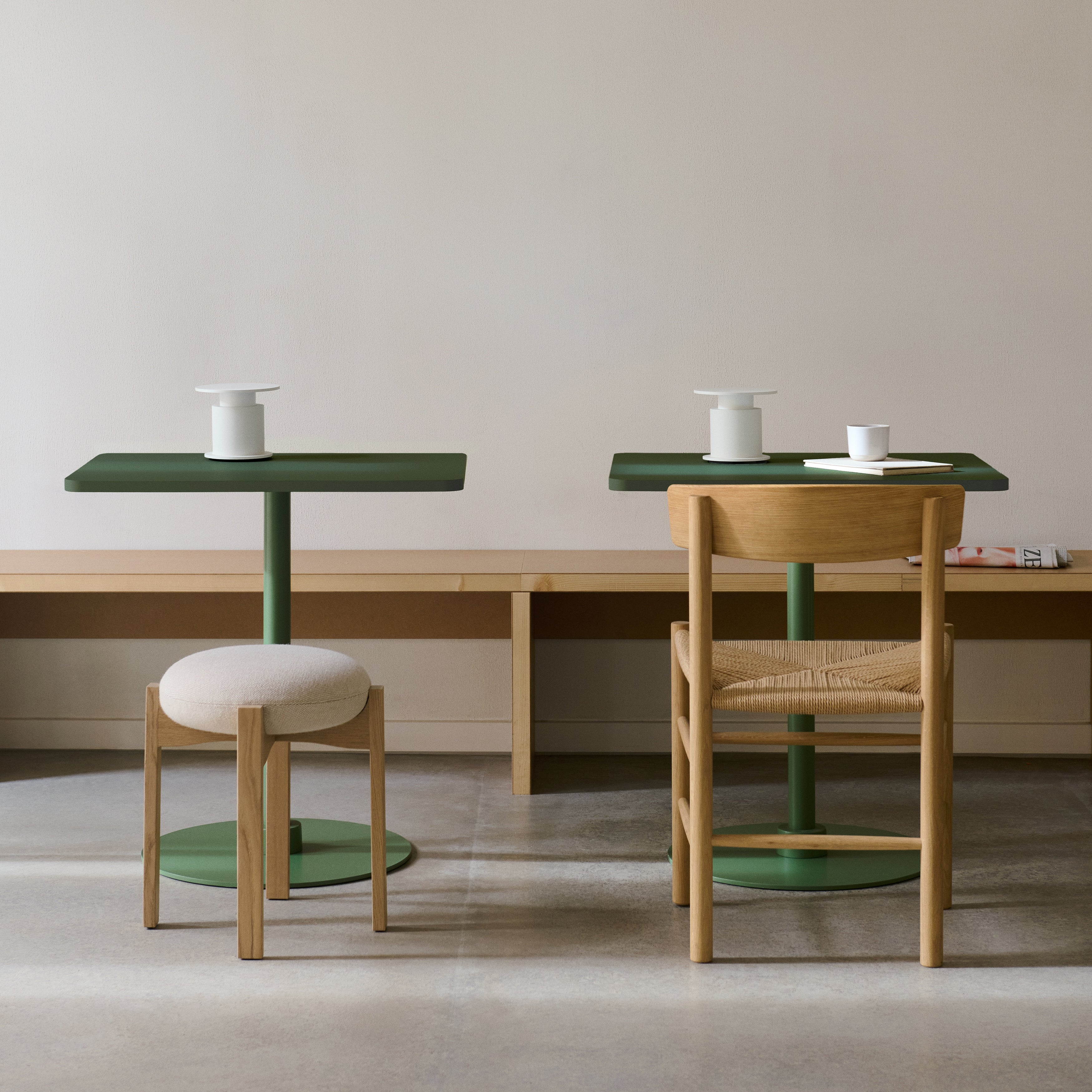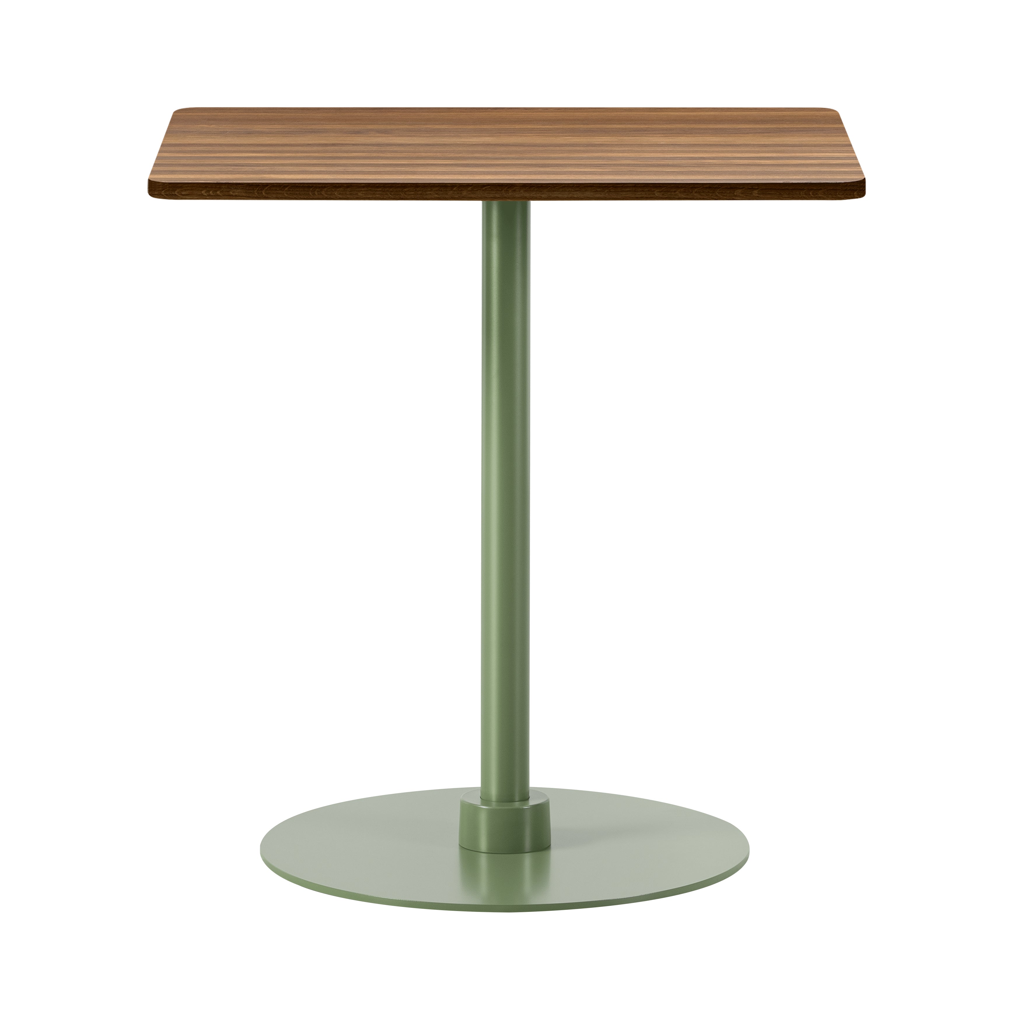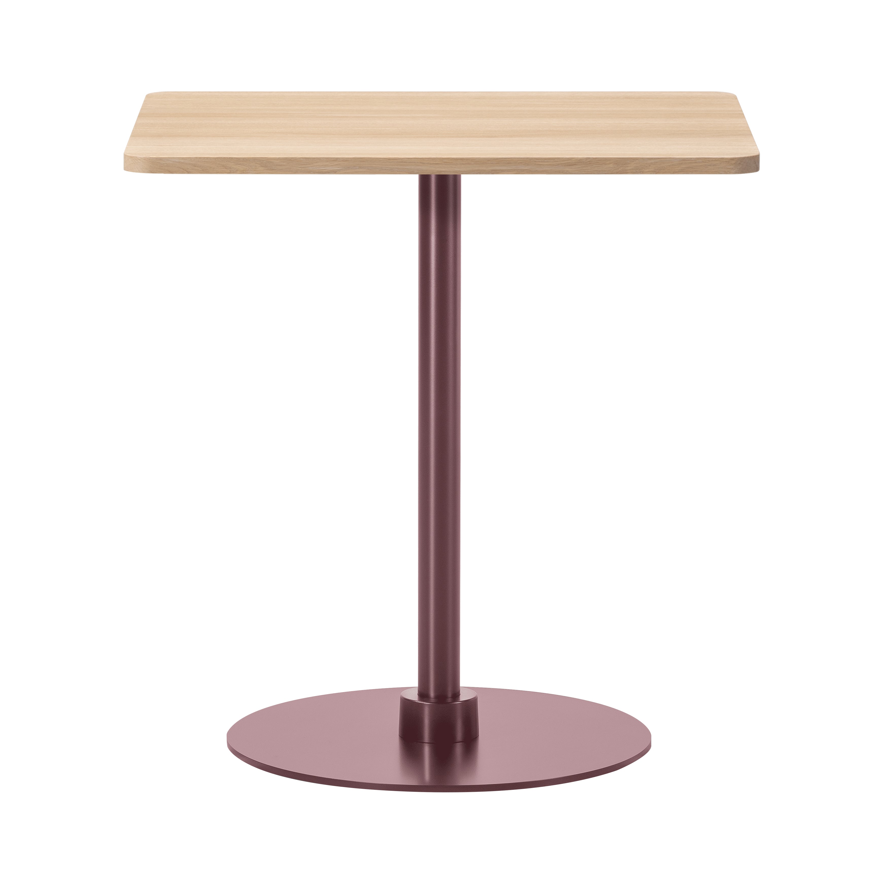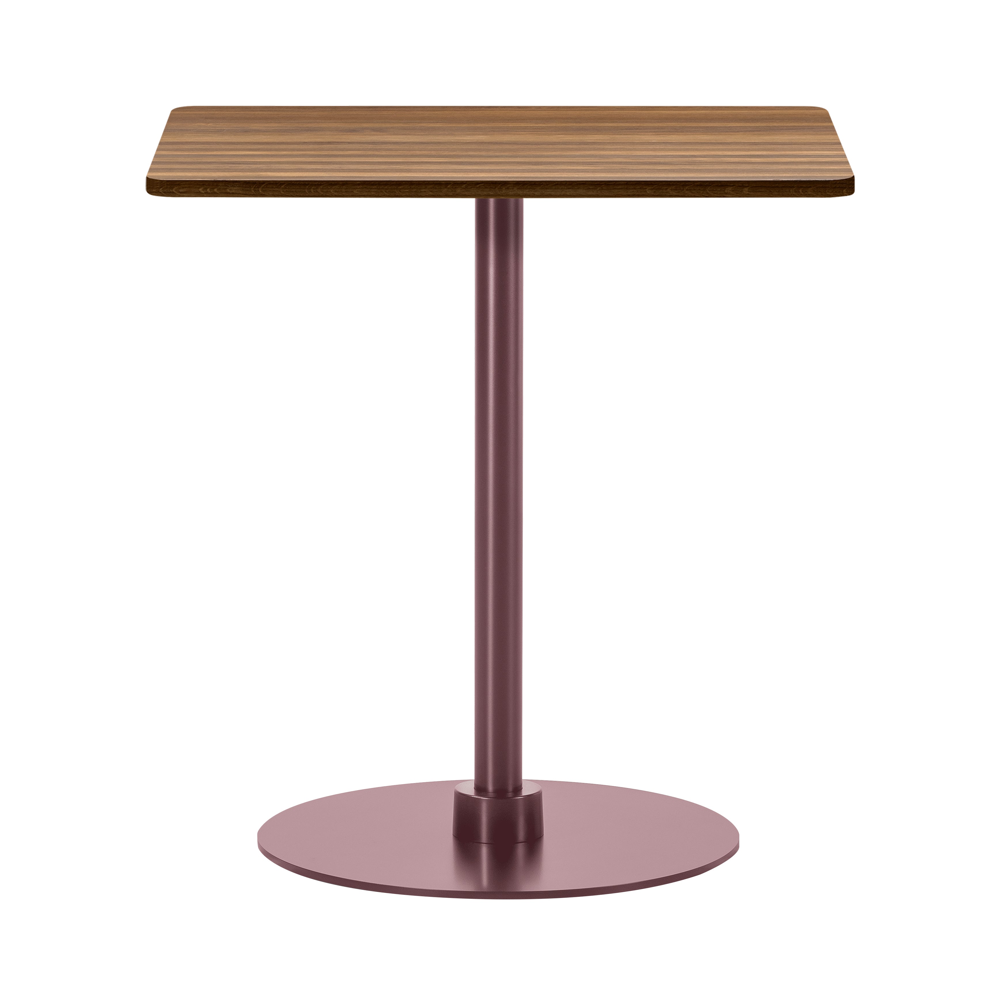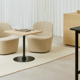 Crafted for smaller footprints, this square table rests on a sturdy base made from powder-coated steel and aluminum. The tabletop is available in a variety of materials, including solid wood, laminate, and marble, offering tactile and visual contrast. The design is available in four height options to accommodate different environments, from casual dining to standing workspaces. Built with disassemblable parts, the table supports long-term use through easy repair and recycling. Its clear structure and adaptable form make it well-suited for cafés, dining settings, or collaborative areas.