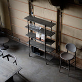 The Skyladder Shelves by Ariake, designed by Gabriel Tan, feature a striking, ladder-like design that provides both function and visual interest. Available in low and tall versions, they come in solid oak (white, natural, or smoke) and ash (sumi finish)