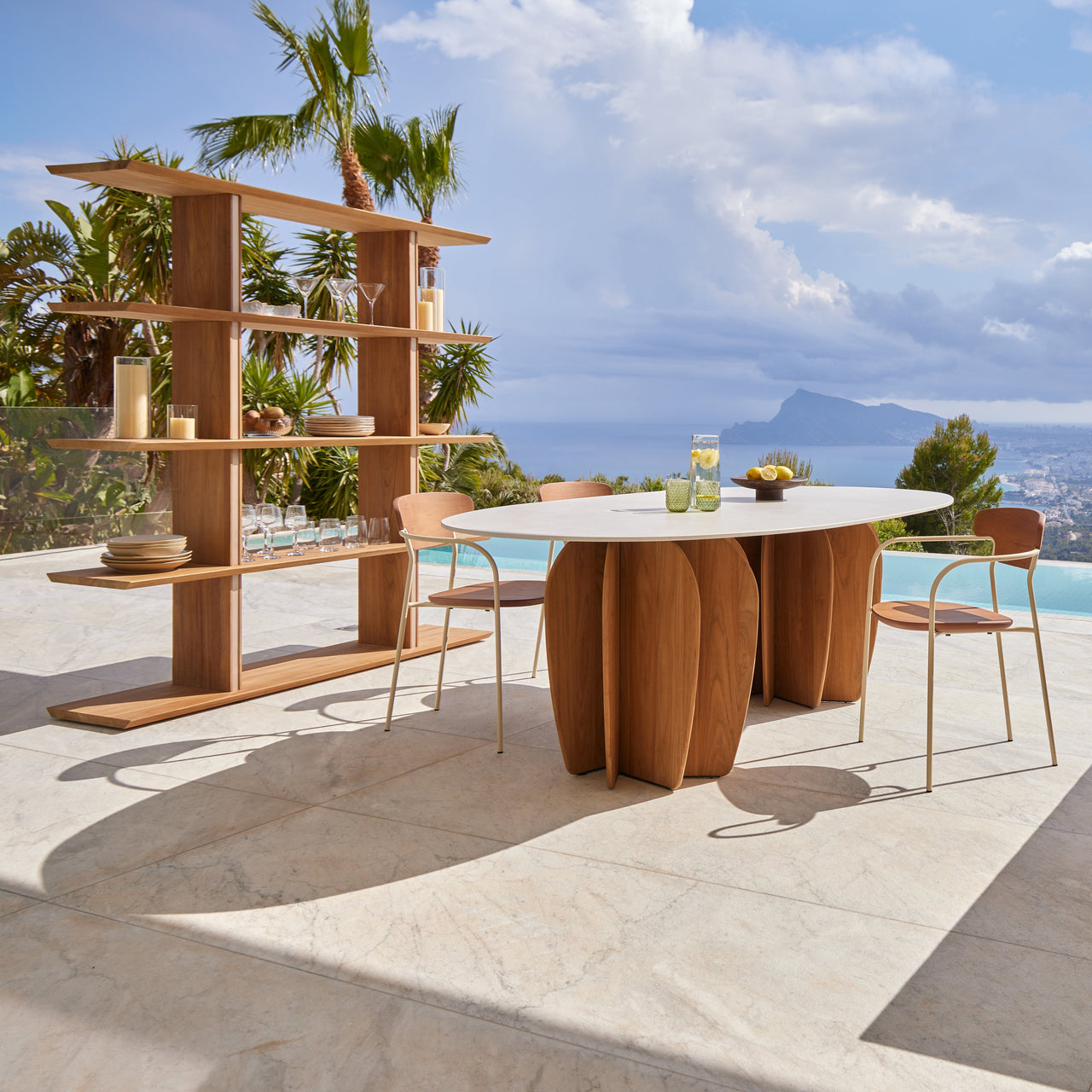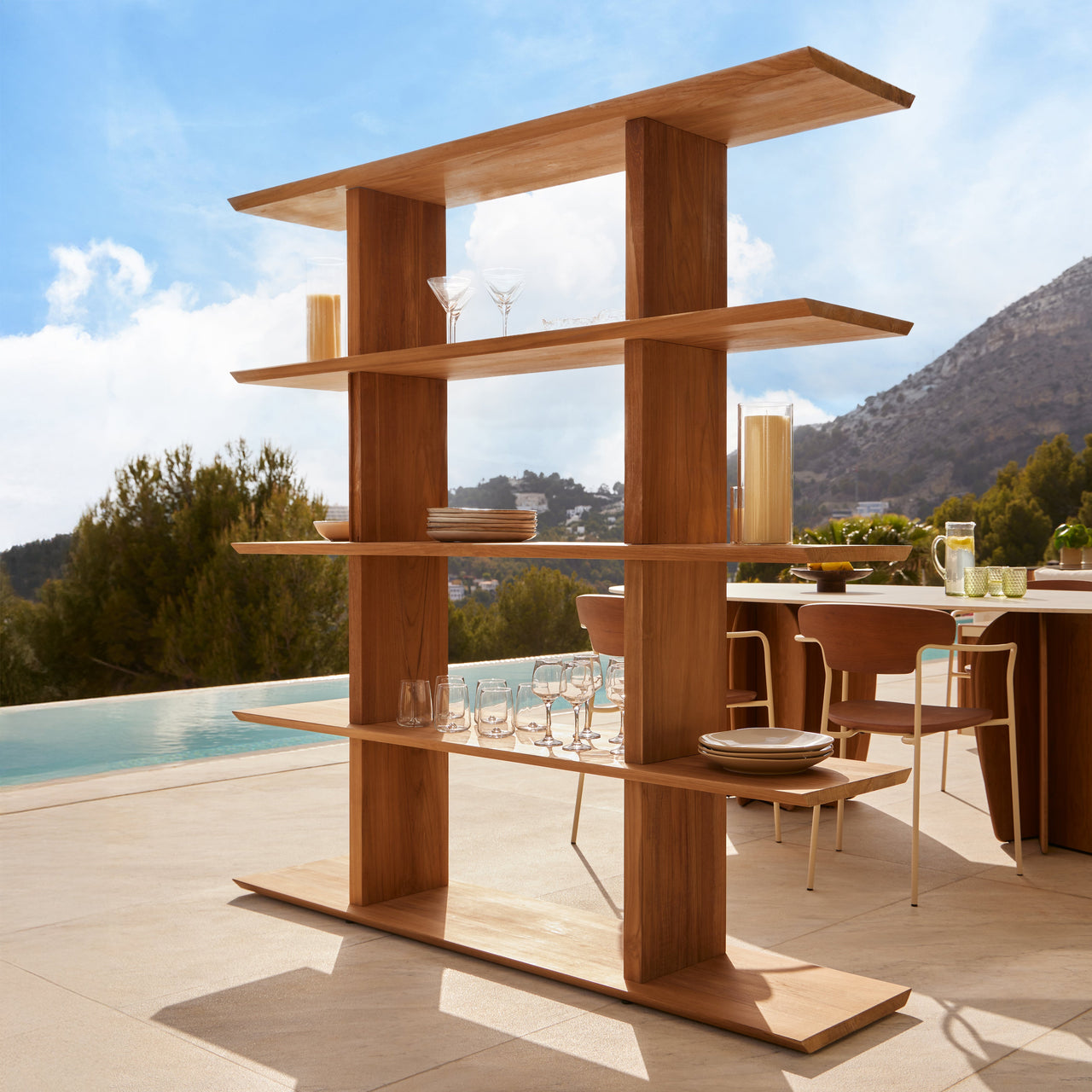 In a 5-shelf configuration, Valencia maker Punt offers striking display-cum-storage inspired by its renowned Stockholm sideboard. To the wide array of custom oak and walnut finishes, Mario Ruiz' design adds gleaming metallics as a final embellishment as well as optional sliding panels that can hide objects and lend light and shadows.