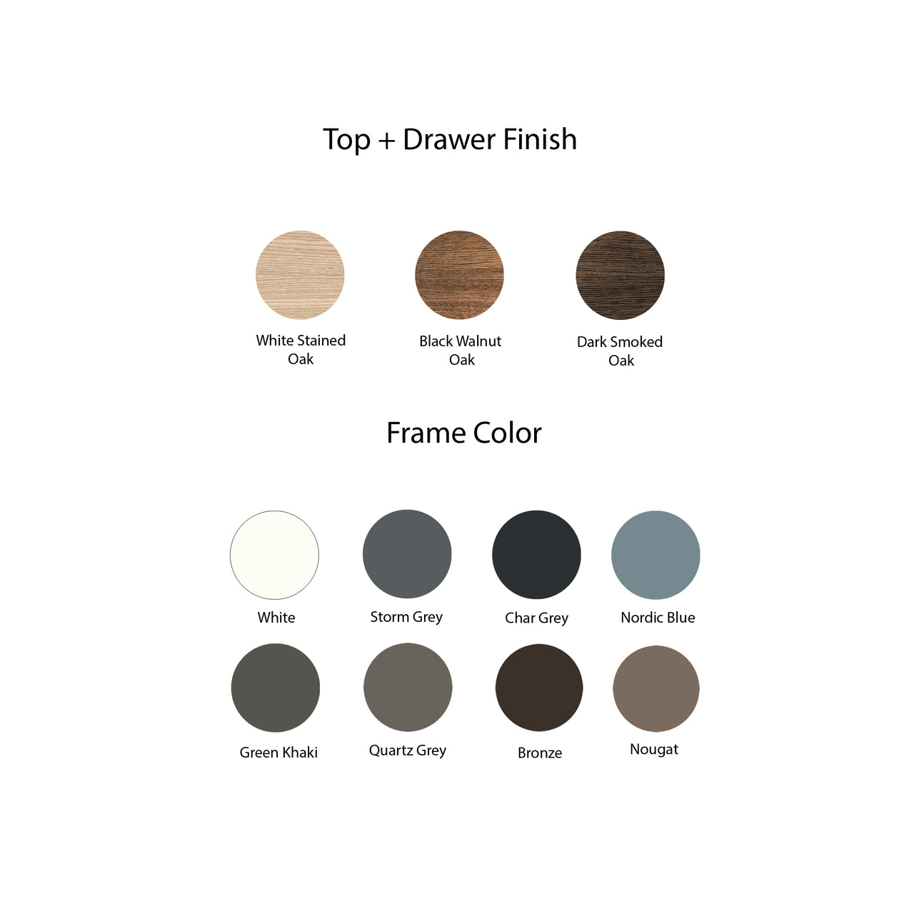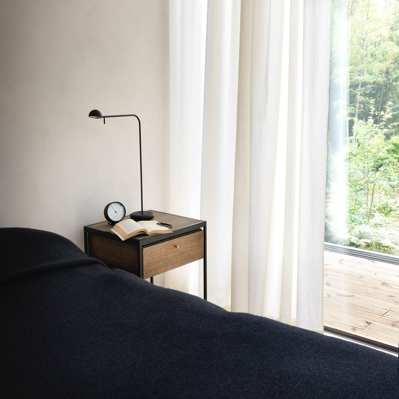 Designers Broberg & Ridderstråle add a drawer to this version of their bed/side table from the much-lauded Tati range. Handmade in Sweden, Nati Tati’s height complements higher beds or an armchair and has the striking linear appearance of the series. With a frame in laquered metal in a curated choice of hues, the oak tabletop and drawer front are available in a selection of harmonious woodgrain finishes.