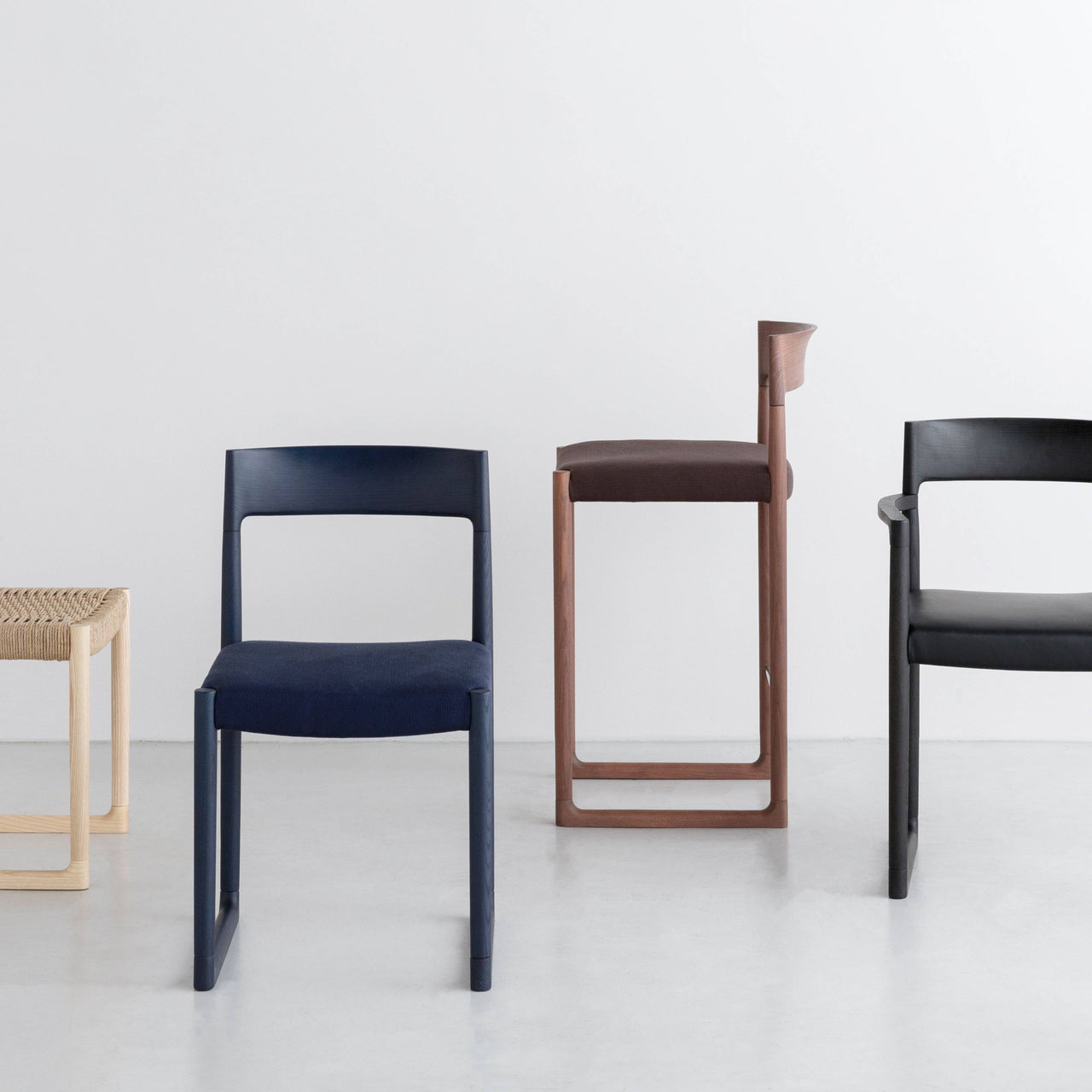 Upholstery in a fine fabric or leather adds a custom note to Milan-based designer Kensaku Oshiro’s wood stool in bar or counter height. With a simple but dynamic form, Sweepy lives up to its name, its backrest made from a single curve of solid ash and set in a squared-off frame. The option for natural, black or select color finishes adds yet more choice for arriving at perfectly individual seating to suit any kitchen or entertaining area.