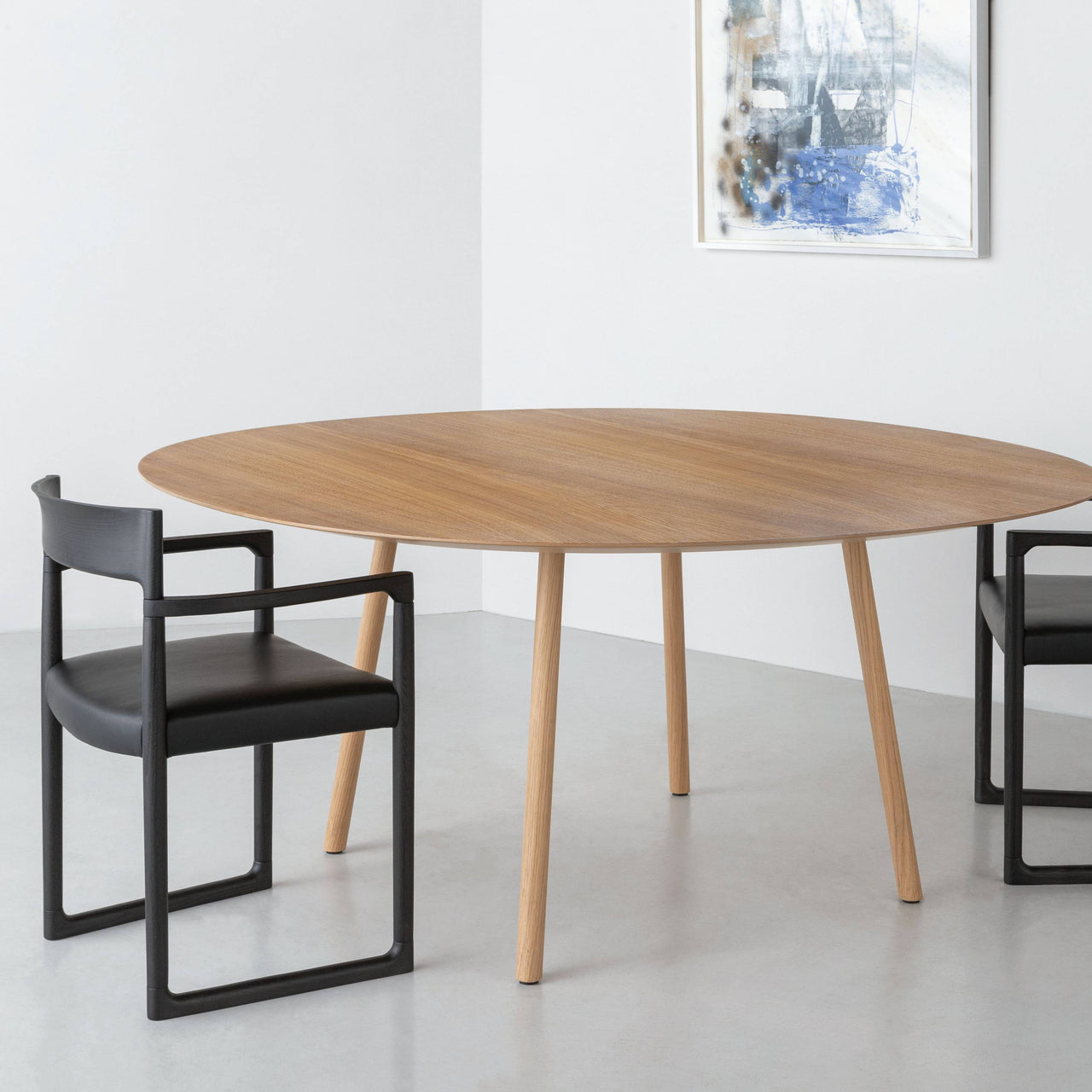 This version of Milan-based designer Kensaku Oshiro’s wood chair pairs the comfortable curved backrest with a upholstered cushioned seat. Rendered in solid ash as either a side chair or armchair, the seating comes in a natural finish or primary painted hues. Clad in a choice of fine fabric or leather options, Sweepy offers a completely customized result.