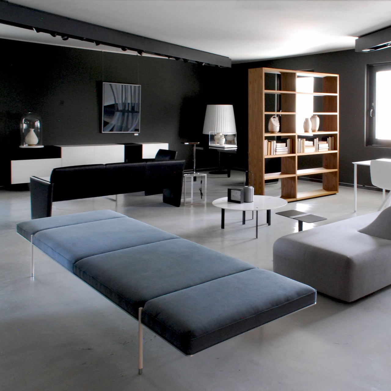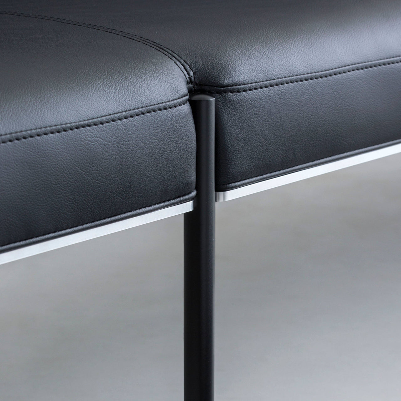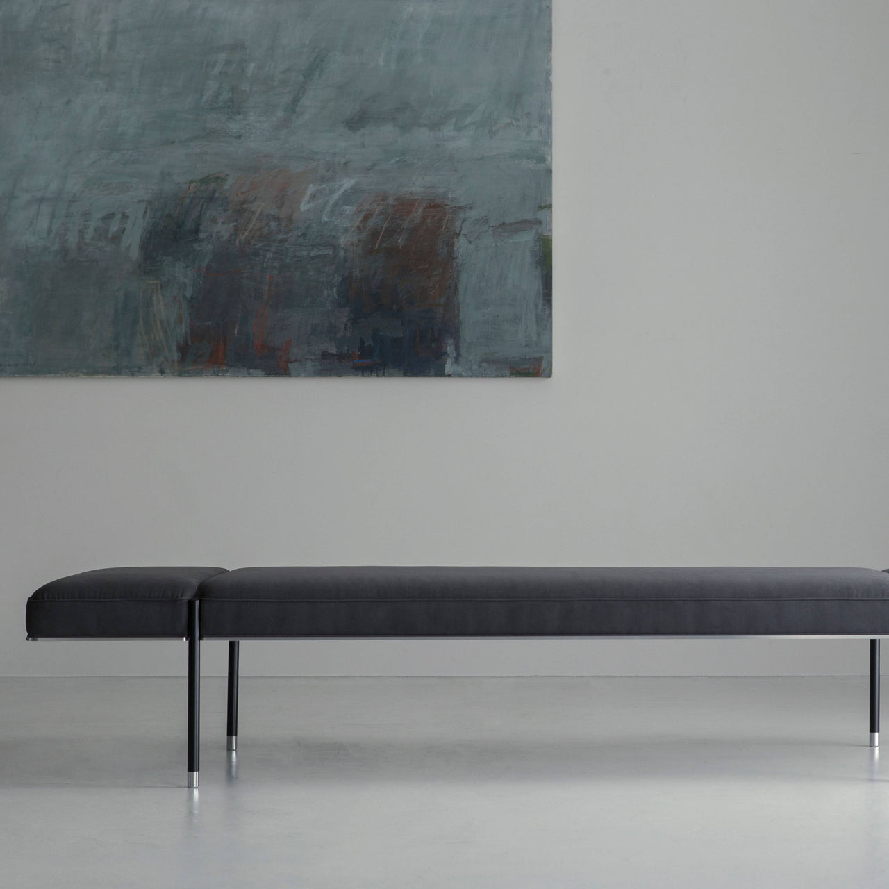 Japanese designer Tomoya Tabuchi employs a novel aluminum honeycomb panel to undergird Twig, allowing for the bench’s ultra-clean silhouette. With the remarkable stability of the airplane-grade material, the bench’s reedlike legs appear to just touch the structure, while a moderately firm upholstered cushion with a silvery profile line emphasizes its geometrics. Powder-coated in black or white with custom upholstery, the bench is equally suited to contract or residential spaces.