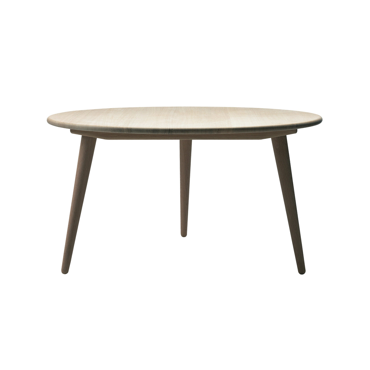 CH008's seemingly simple 3-legged 1954 design has become one of Hans J. Wegner's most iconic and deservedly so. The understated and elegant coffee table required an equal amount of effort in proportioning the tabletop as engineering the solid wood frame that connects the round legs. Available in a trio of diameters as well as 3 different heights, it comes in a range of oak or walnut finishes and pairs well with other Wegner icons, such as the CH07 Shell Chair or the CH445 Wing Chair (also at A+R).