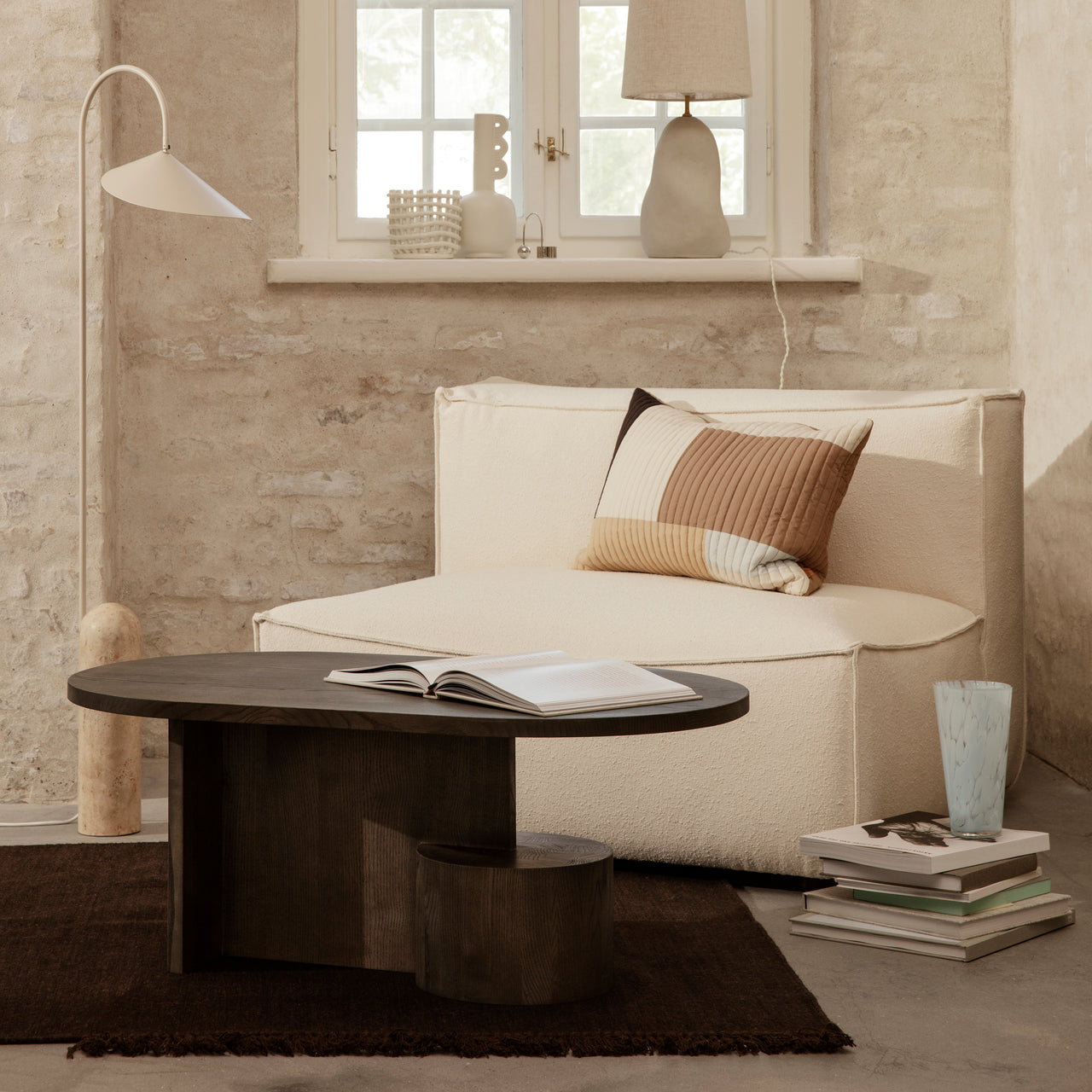 Copenhagen's Ferm Living plays with proportion with its sculptural coffee table crafted from solid ash and available in either a natural or black finish. The oval tabletop rests lightly on asymmetrically placed, right-angled panels anchored by a substantial cylindrical base. While functioning admirably as a coffee table, Insert also makes for an artful addition in the home.