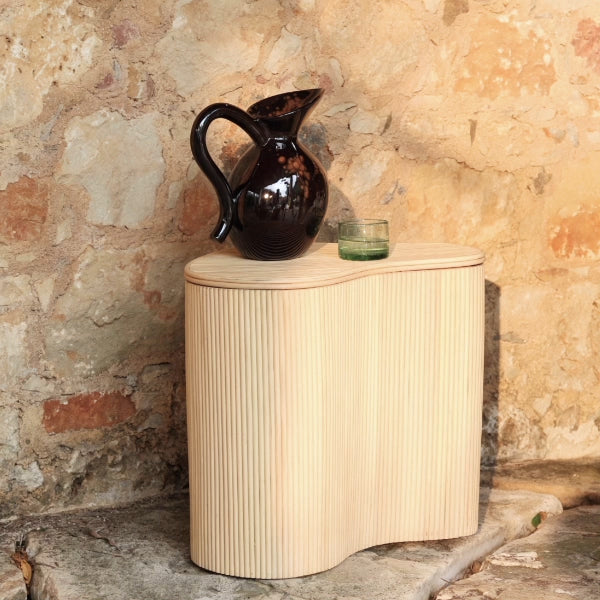 Picture it placed at bedside, in the kids' room to keep things tidy or as an end table in the sunroom—Isola combines a pleasing organic shape with capacious storage possibilities. Ferm Living's holdall with its practical concealing lid features a front and top in natural rattan and the interior is made from sturdy MDF and plywood. Anywhere space is at a premium, Isola's attractive twofer of generous table surface and hidden storage makes for a more than welcome proposition.