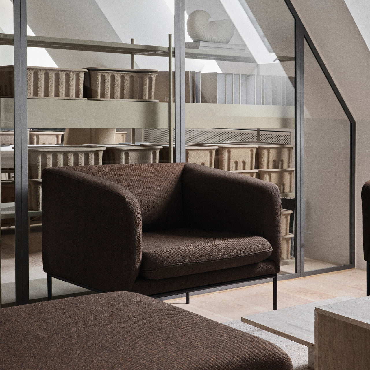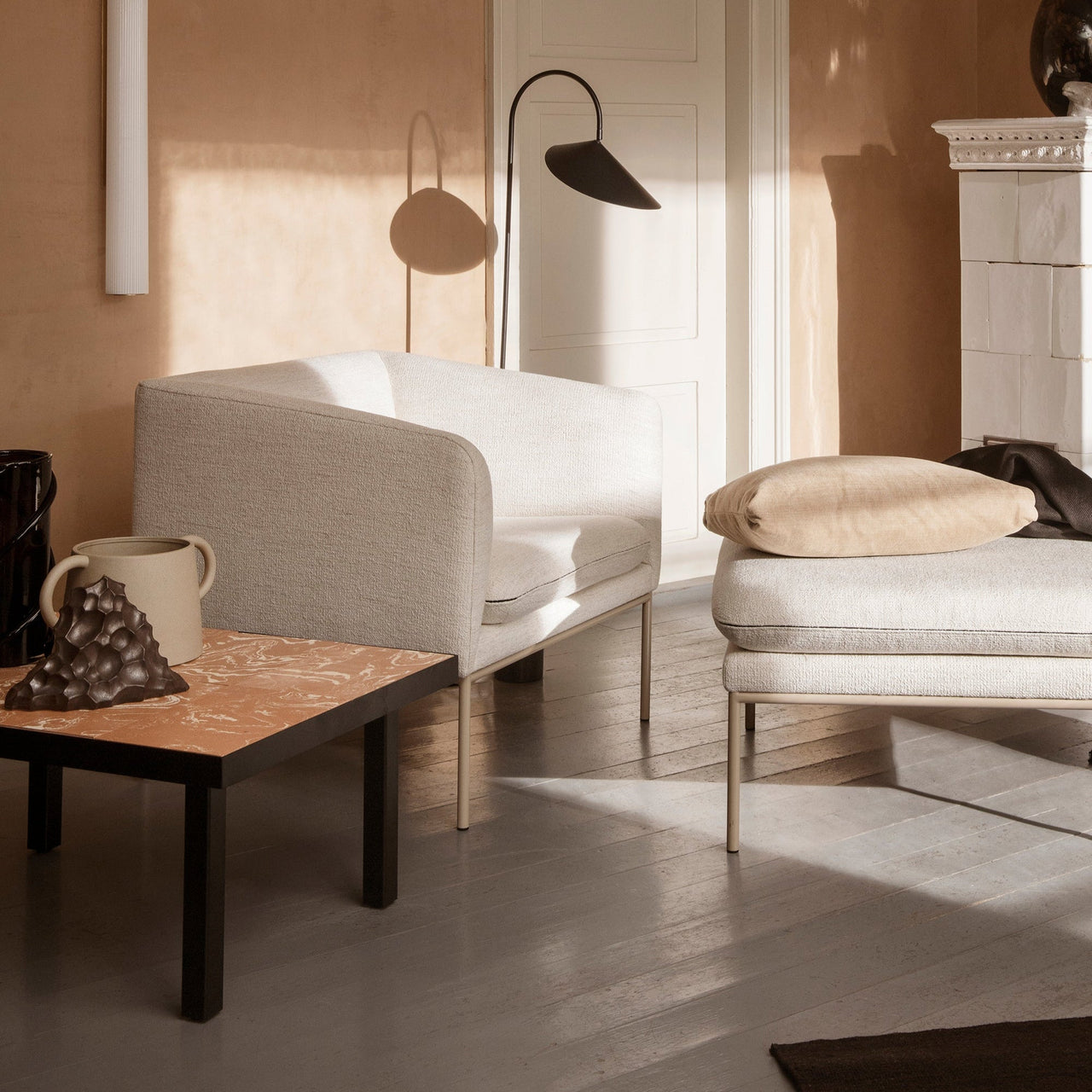 Perched on slim metal legs, Ferm Living’s clean-lined Turn beckons in a single-seater version for dedicated lounging solo. With a squared-off profile, comfortably rounded inner cushioning and crisp upholstery, it delivers a range of individualized possibilities with a variety of premium textile coverings. Offering a welcoming cushiness, the seating lands in a room with an appealing lightness of form and timeless Scandinavian ease.