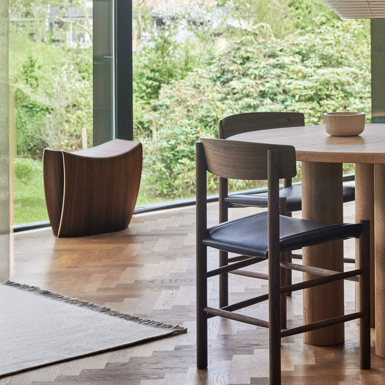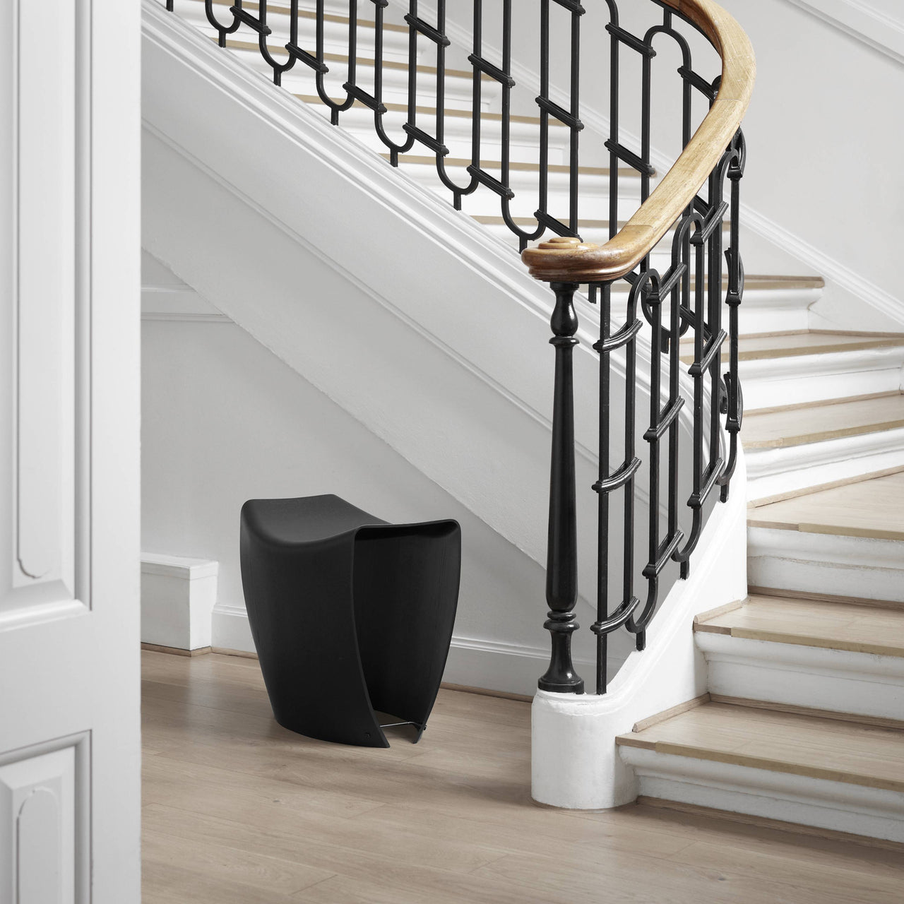 Designer Hans Sandgren Jakobsen pushed the prosperities of molded plywood to the limit when he unveiled his Gallery Stool in 1998. Part sculpture, part seating, the emphasis is on the simple curves that convey a lyrical character that has been recognized with numerous international accolades in the interim. Rendered in FSC 70% black-ash mix or lacquered walnut, it's a sleekly dynamic — and conversation-generating — addition to all manner of interior settings.