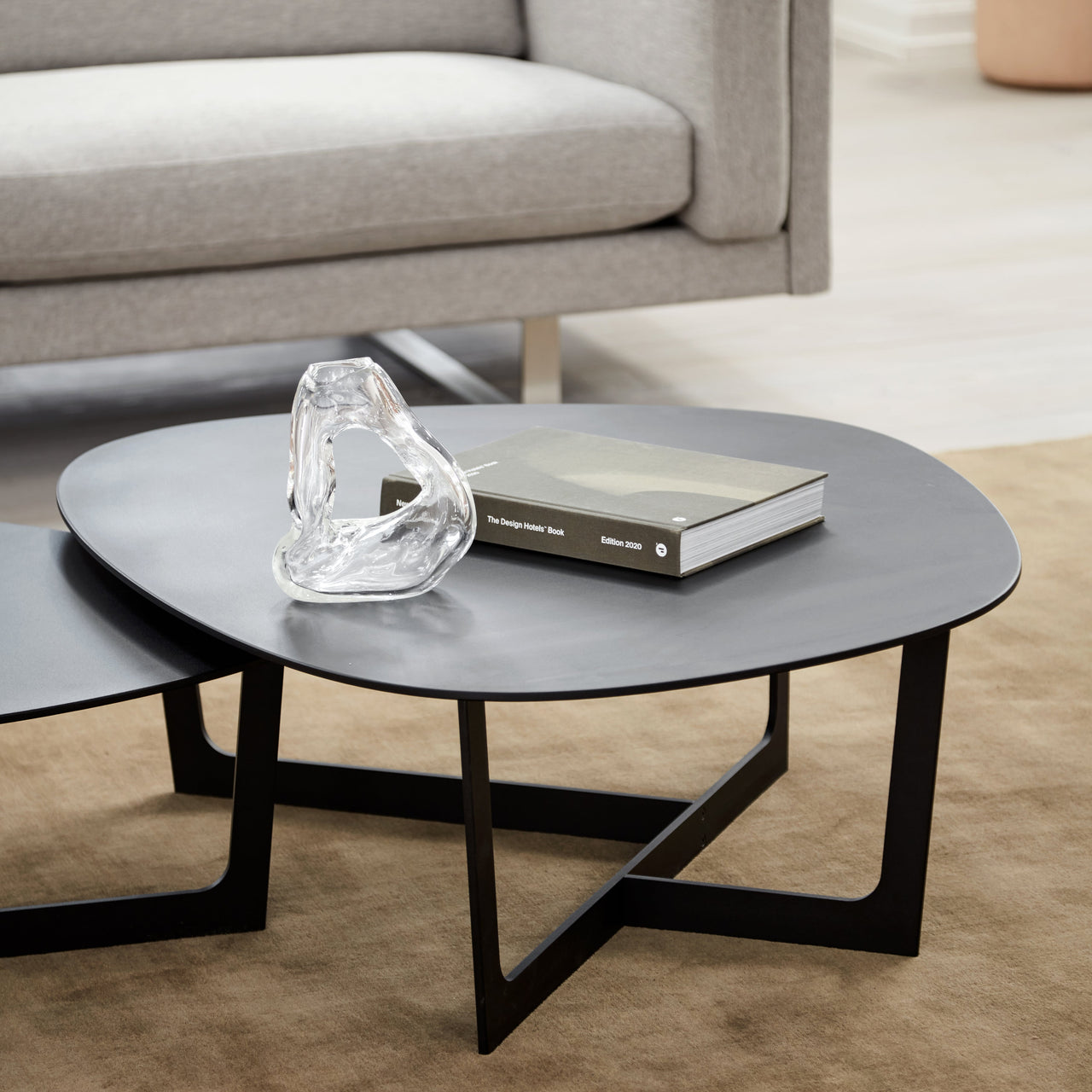 The free-form tops in Ernst & Jensen’s Insula series of occasional tables seem to float much like small islands in a lagoon. Asymmetrical yet balanced, the sharply angular supporting aluminum frame in powder-lacquer finish contrasts with the organically shaped solid-oak surface, available in a choice of rich finishes. Each of he tables’ striking silhouettes makes them equally beautiful as stand-alones or clustered together to form an archipelago.