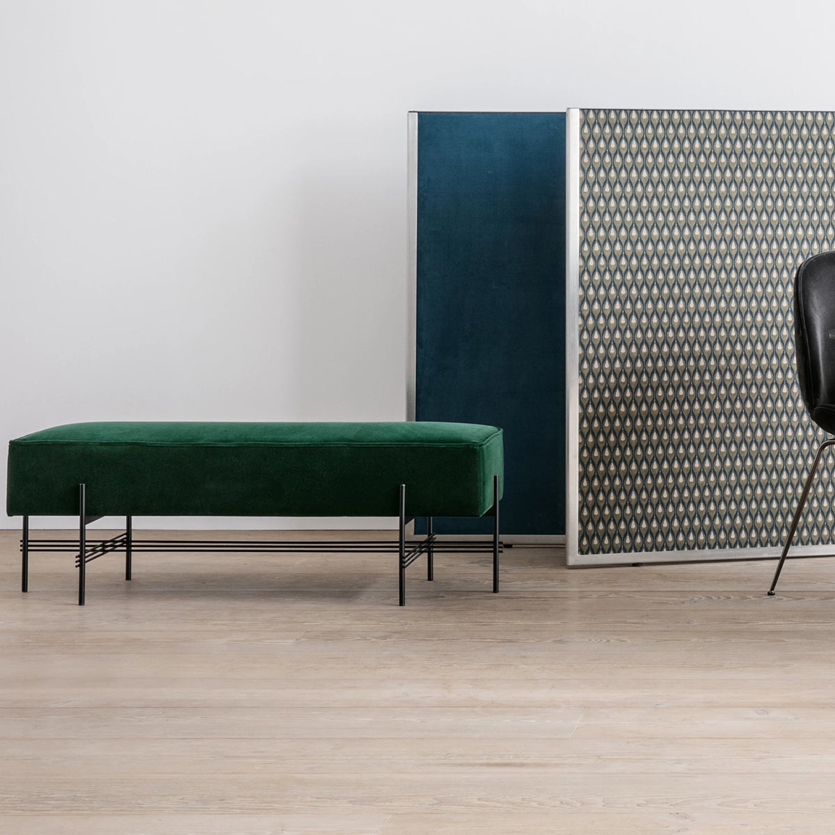 GamFratesi combines great functionality with unmistakable style in the rectangular TS Pouffe, a riff on the design duo's scheme for The Standard in Copenhagen. The slender metal legs and cross-wise detailing echo the furnishings originally made for the Danish waterfront restaurant. Another characteristic touch is the raised piping outlining the piece's organic shape, upholstered in a choice of premium textiles or fine leather.