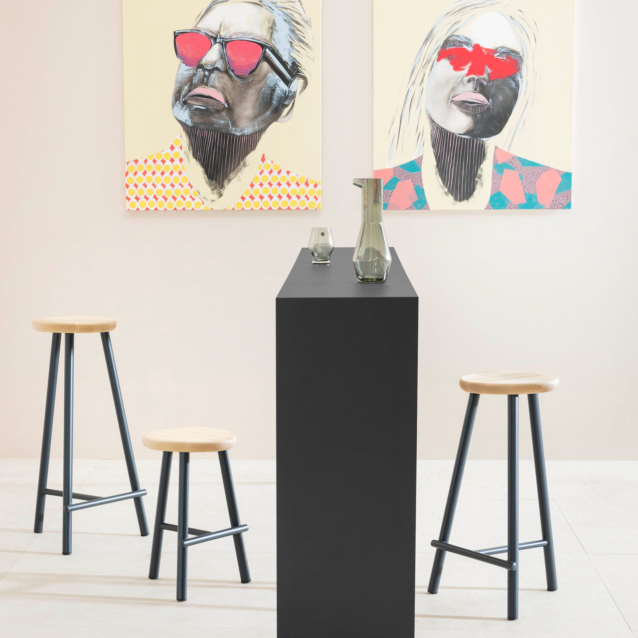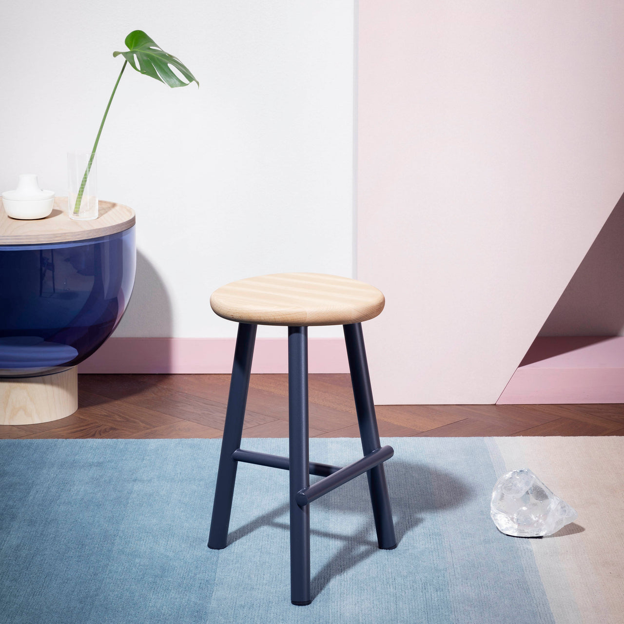 Taken out of the barnyard and spiffed up to suit any stylish environs, Veronese designer Paolo Cappello completely rethinks the once-humble milking stool. Now shiny and new, Milk is fashioned with a tubular-metal tripod base in a range of colors and a natural-finish beechwood seat. Lining up the front legs with the seat edge also allows for a comfy footrest bar.