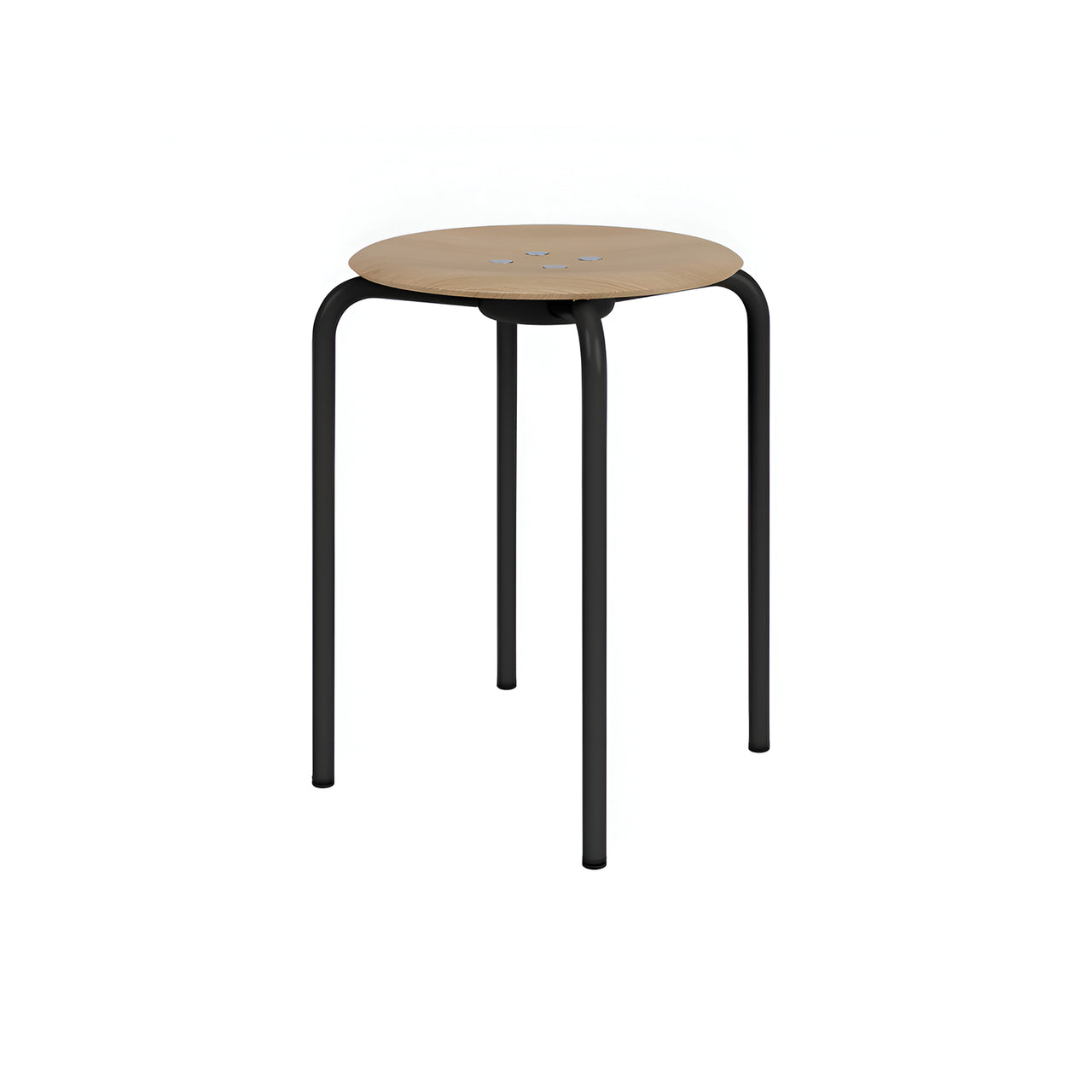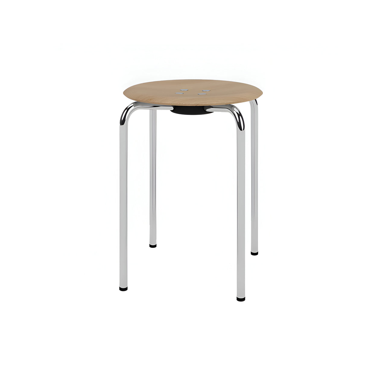 More than 50 years after he first unveiled his iconic office chair of the same name, Danish design legend Jørgen Rasmussen adds a 4-legged stool in the same minimalistic vein. Kevi's comfortably rounded seat is made of compression-molded veneer in oak or walnut or a range of azure colors. The slim tubular legs come in a choice of polished chrome or powder-coated black, making this extra seating piece as handsome as it is functional.