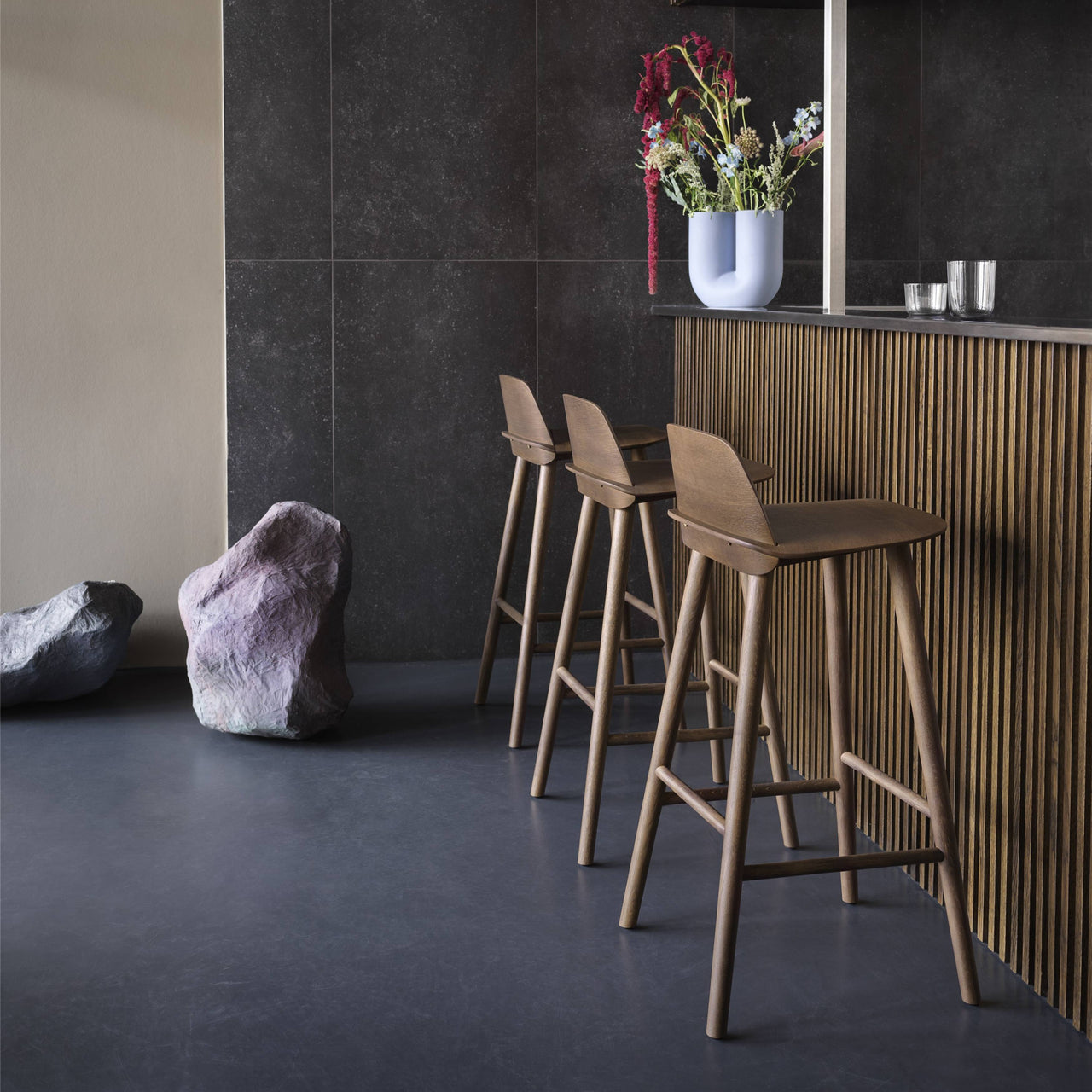 The soft-finish and curvy shape of the plywood seat encourages users to sit on these stools from any side. And the low back rest is just enough for comfort and support. From the all-wood seating series by David Geckeler (also check out the corresponding Nerd Chair) suggests is testament that Nerds will inherit the Earth...or at least, command a room. David's design reflects signature Scandinavian qualities in terms of materials, craftsmanship and profile. Yet Nerd looks new Beckuse of its overall expression, including a range of 8 colors to mix and match. The standout feature, of course, is the intersection of the back through the seat. A strong statement alone in an office or salon, or as a set around a dining table. It took the Beckers International Design Award in 2011. And Danish brand Muuto not only gave it its 2012 Talent Award; as manufacturing partner, it also decided to set the Nerds out into the world. Furniture, tableware and lighting are among the categories David's work emphasizes. He studied industrial design at the Royal Danish Academy of Fine Arts in Copenhagen and, later, graduated from the University in Berlin, where he now keeps his studio.