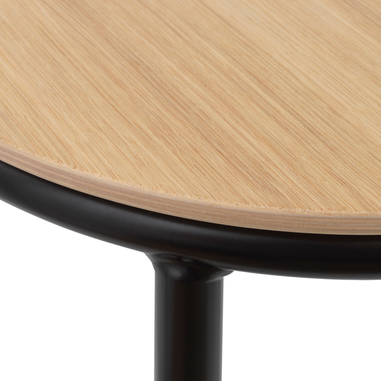 As a solo perch or pulled up to a dining table for extra seating, Circa's telling details embody the timeless spirit of minimalism. Designer Simon Legald elevates the round seat slightly from the steel tubing base in light-handed move that offsets the solidness of its construction. With a small added hole in the center for easily moving the stool around, the seat comes in a choice of natural and black lacquered oak veneer or black powder-coated aluminum.