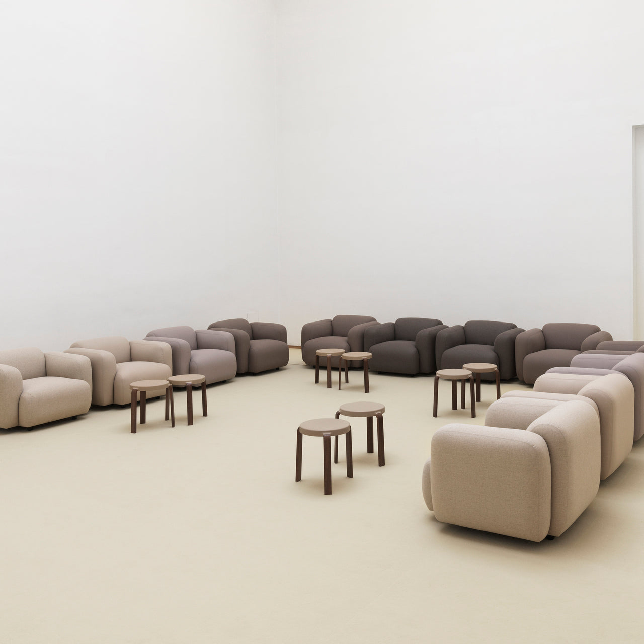 How to improve the commonplace round stool with 3 molded legs? With Tap, designer Simon Legald has a few ideas, starting with the hard foam used for the seat—a comfortable improvement. And, like rubber, it has a flexible, sealed surface, making it soil-resistant, durable and easy to clean. The stool's integrated legs give a sense of a unified whole, not to mention making Tap easily stackable. Unbeatable as an extra seat or an impromptu footrest.