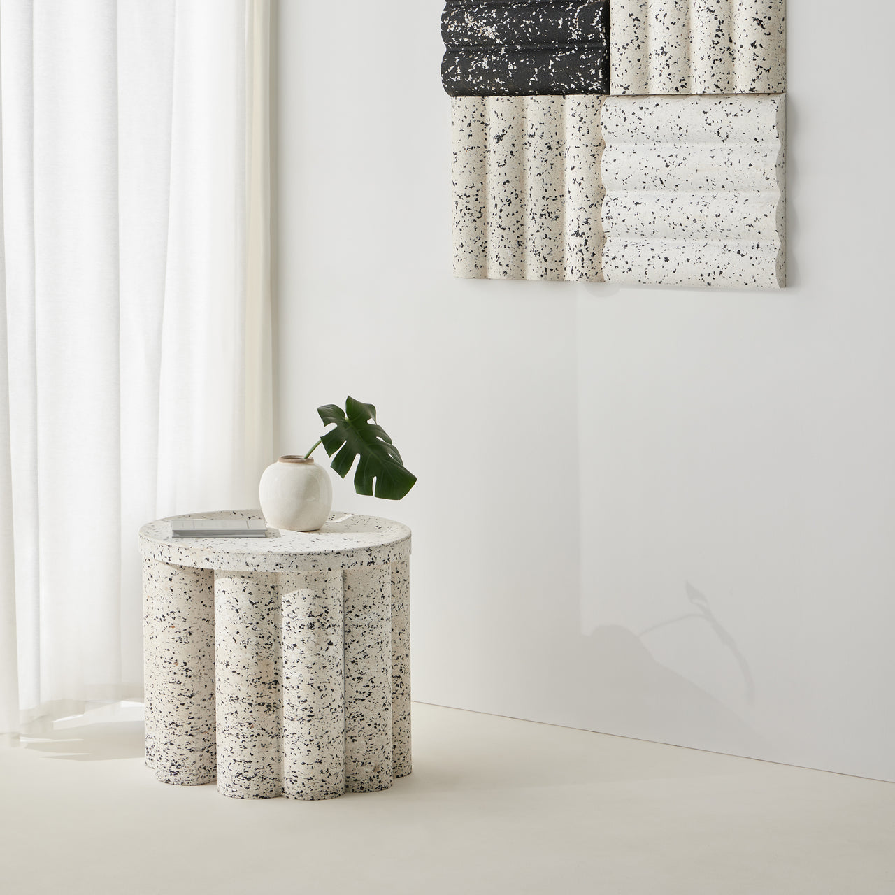 The Nuvol Low Table exemplifies a commitment to sustainability and innovative design. Crafted entirely from recycled materials sourced from textile and automotive industries, this table transforms waste into functional art. Its distinctive round shape and cloud-like form make it a striking addition to any interior space. The Nuvol Low Table is available in black and white finishes.