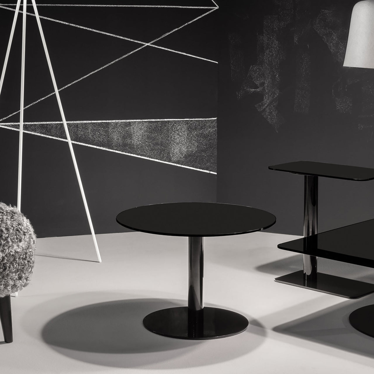 Translating a fondness for disco glam to the home front, designer Tom Dixon's Flash range of tables brings a lively gleam in any setting. As a cocktail or side table, the round model combines a metallic mirror surface in dark bronze with an antique-brass spool base. Dramatic as a singular addition or pump up the volume by clustering with the other multilevel tables in the series.