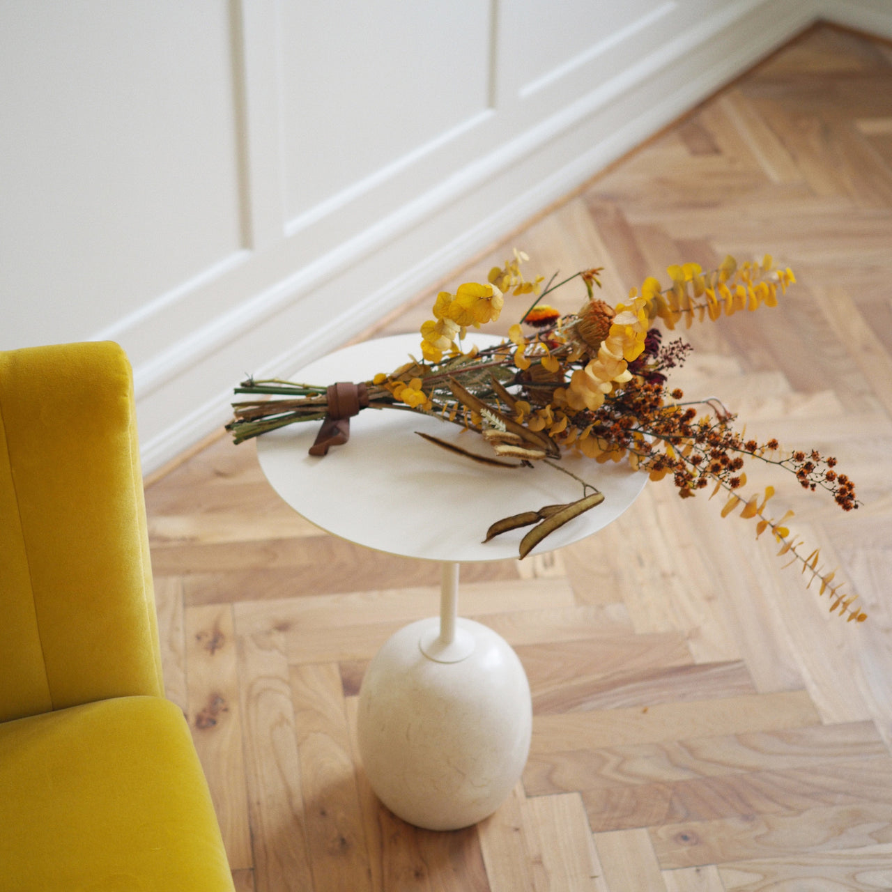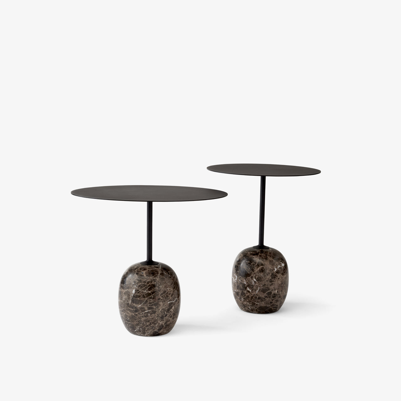 Part sculpture, part side table and all beguiling, Lato combines a laser-cut steel tabletop with a powder-coat finish and a solid marble base shaped on a lathe and then honed to a semi-matte sheen. Amusingly, designer Luca Nichetto was originally inspired by the idea of a lollipop turned upside down. But growing up observing the artisans on his native island of Murano, he also had an idea how to interpret that playful notion into something more luxurious. LN9 is the smaller version in the series and has an oval tabletop, available in ivory metal with a Crema marble base or a warm black metal with an Emparador dark marble base.