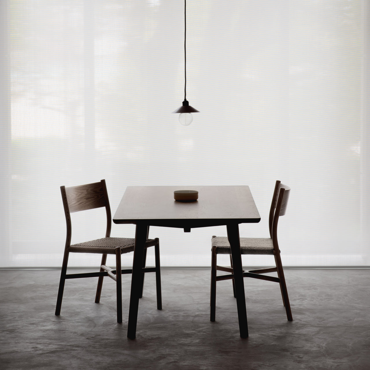 With a seat in woven natural or black paper cord, this version of Ariake Chair melds the harmony of both hand work and advanced machining that combines classical and new joinery details. A comfortably curved backrest adds the final touch, with the seating available in solid natural oak or stained ash finishes.
