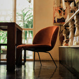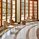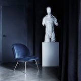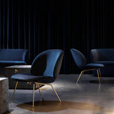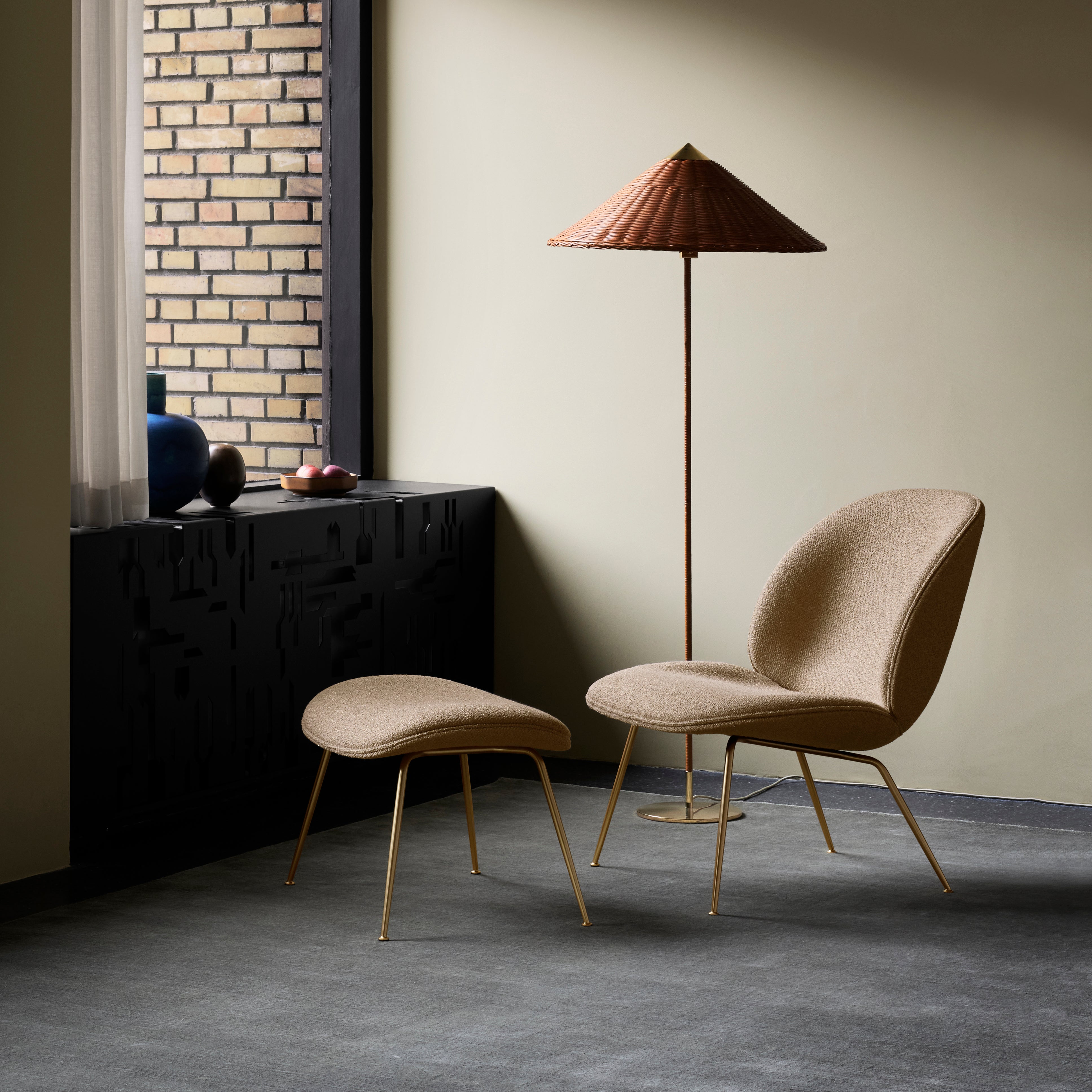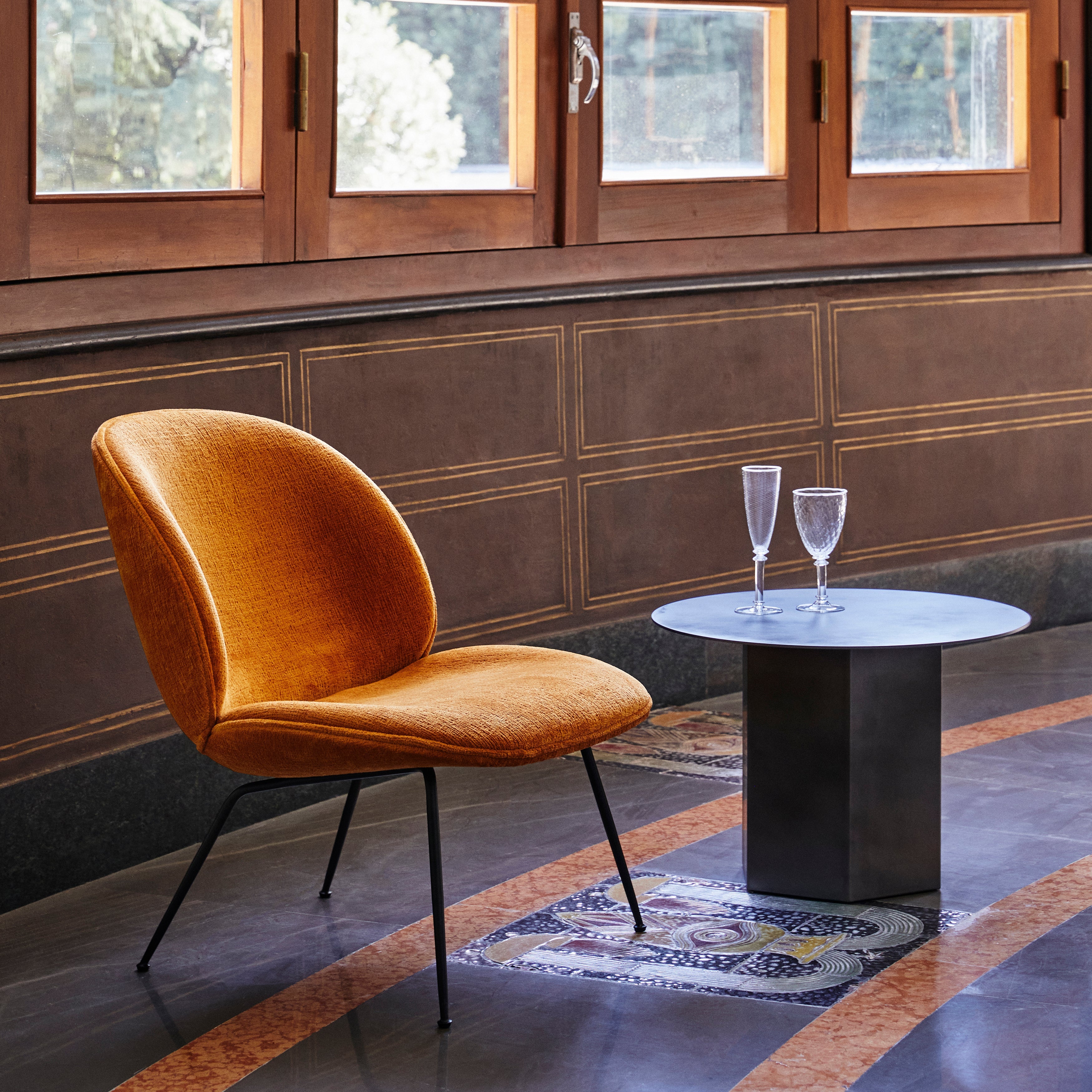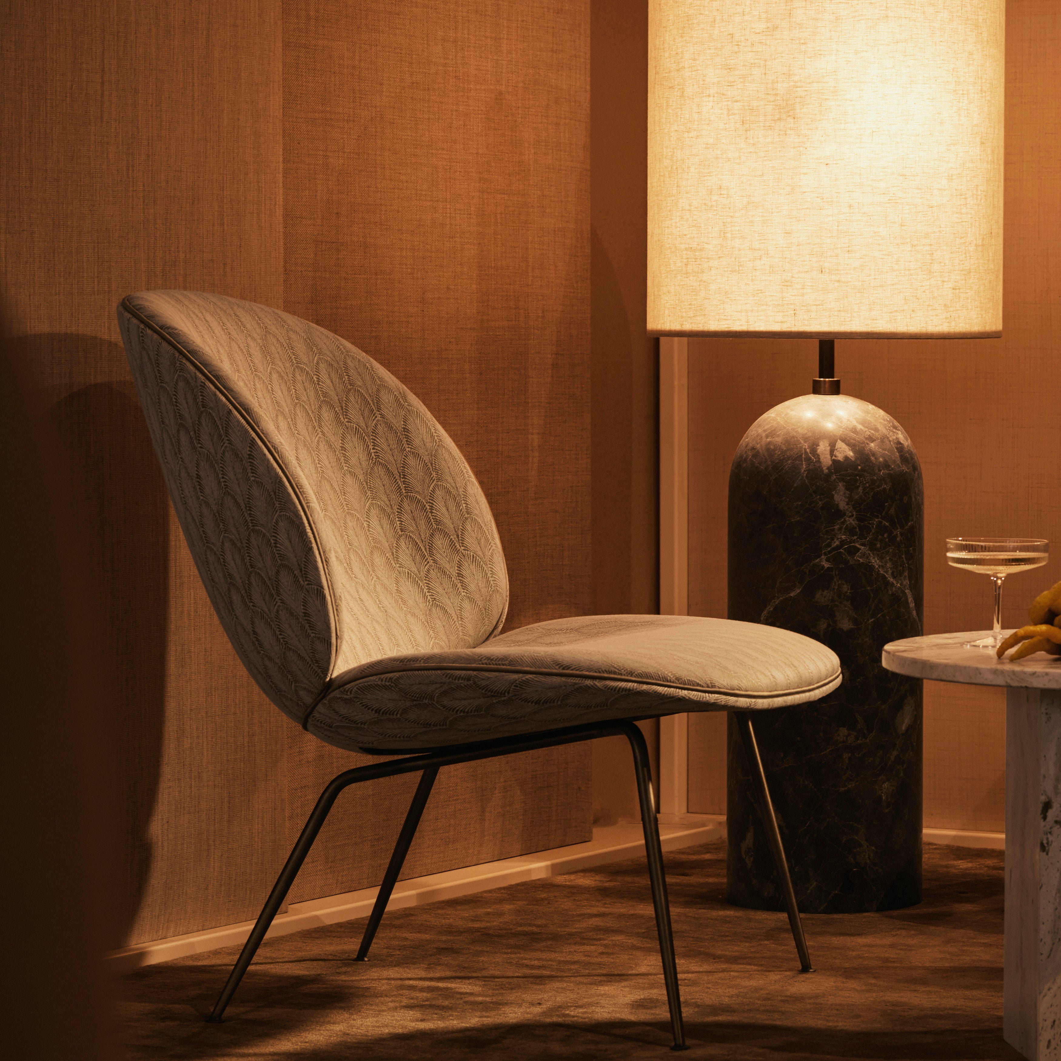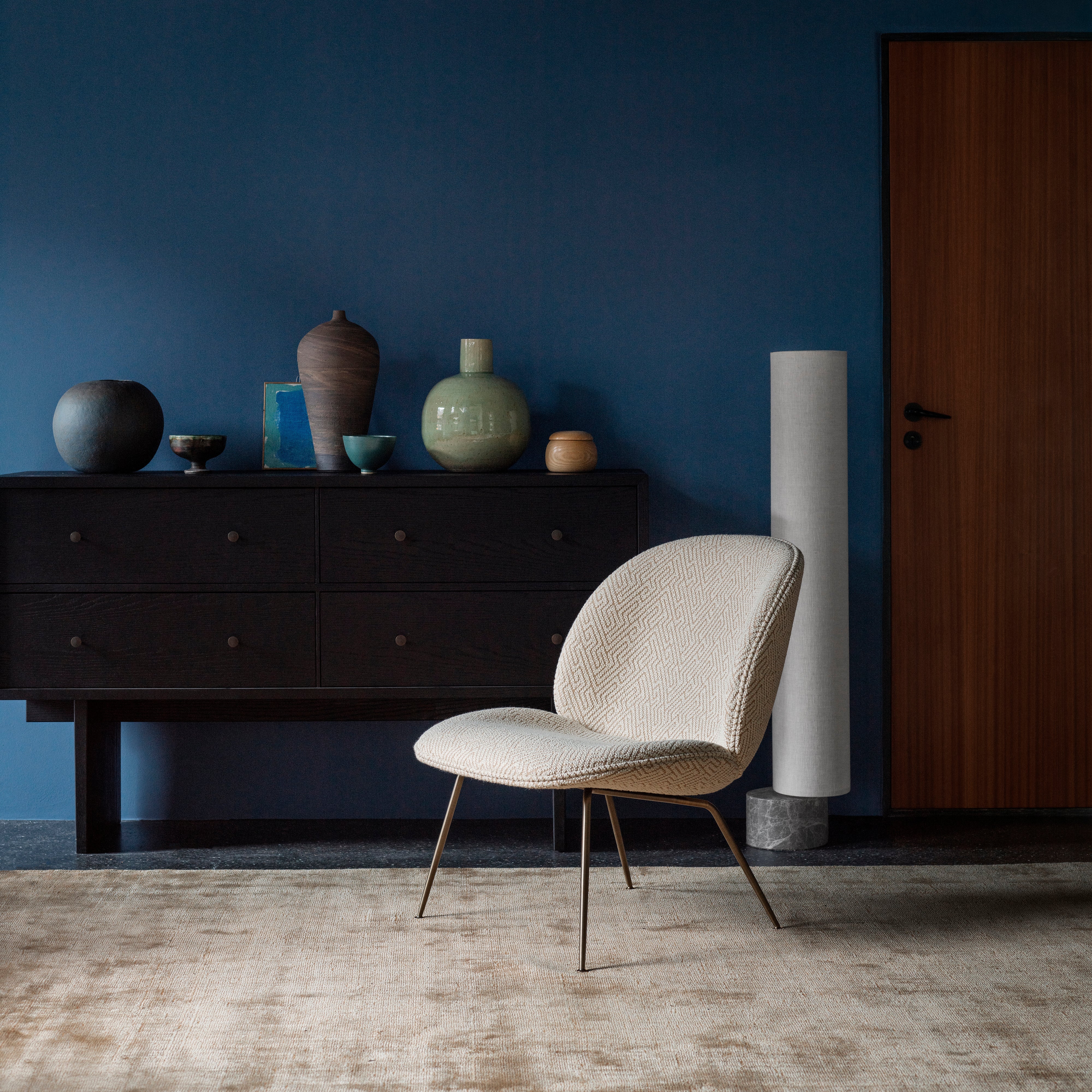 With its attenuated conic base in matte black, chrome or brass finish, the fully upholstered version of Beetle Lounge Chair combines high style and relaxed comfort. Employing gentle references, design duo GamFratesi reveals inspiration from the collection's namesake, a common garden insect. In luxurious fashion, the chair reinterprets the characteristic elements of the beetle's anatomy in the shell shape and padded interior, sheathed in a selection of fine textile and silky leather options.
