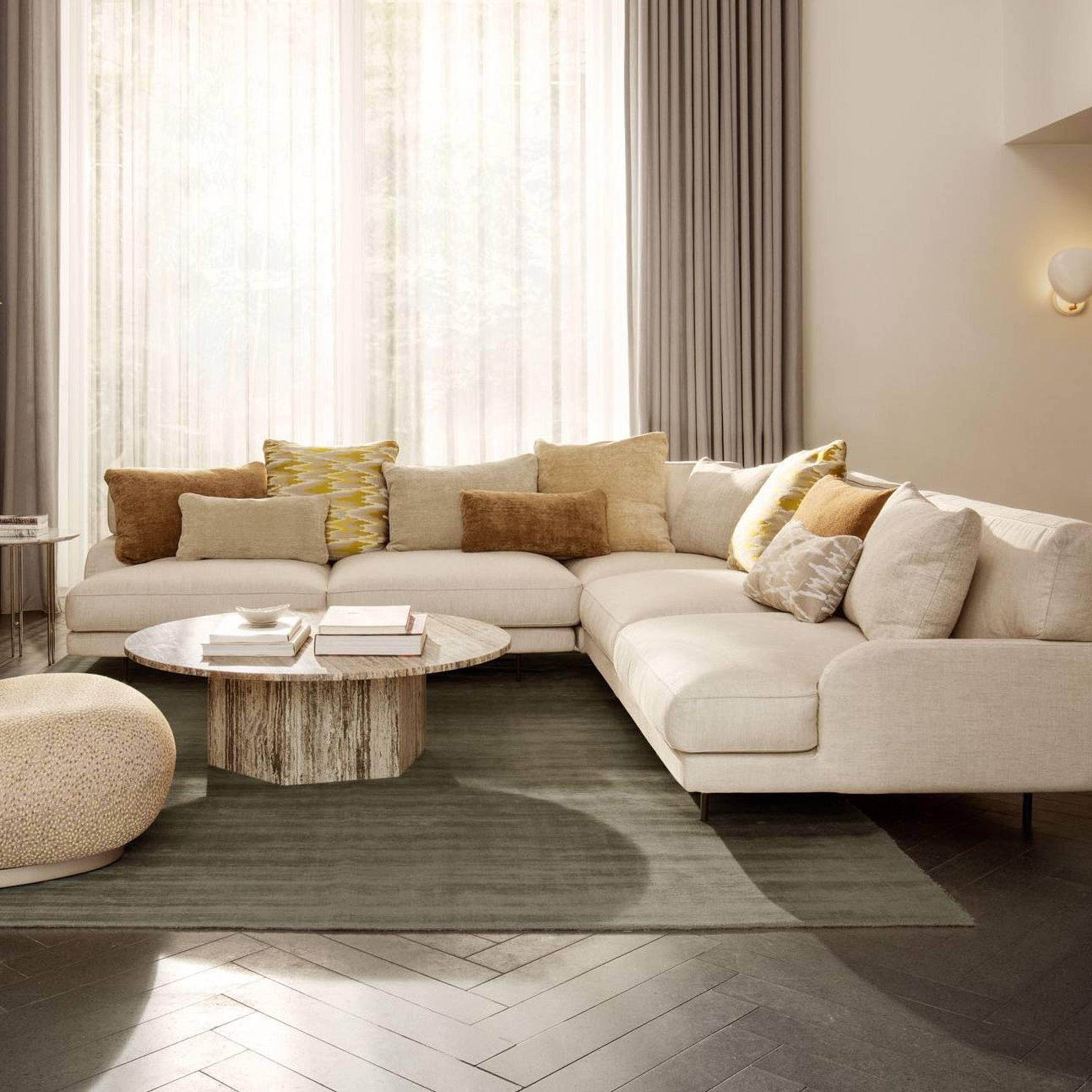 Echoing the lines of the English sofa classic, Flaneur’s modular 2 Seater with either a left or right rolled arm makes for a versatile option for configuring a customized seating arrangement. With a modernist mien, design duo GamFratesi meld a low-slung profile with generous Italian proportions and plump cushioning for a change from the usual squarer modular sofas. Flaneur’s comfort reigns supreme while its precise silhouette and taut upholstery bespeak a pleasing exactitude. The sofa’s slender wooden base tops visible metal legs and underpins the inner layering of springs, foam and feathers. Defined with faultless piping, the seat and backrest cushions feature removable covers for ease of maintenance.