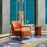 Elegant and sleek, Sejour adds a lounge chair version with graceful armrests. Design duo GamFratesi imbues the compactly scaled seating with a deep, generous seat and a distinctively curved backrest inspired by maker Gubi’s signature Beetle dining chair. Balancing soft with hard, warm with cool, the visual interplay of brass and upholstery fabric gives the chair a richness and comfort-inducing appeal, whether situated in a contract setting or a residential environ.