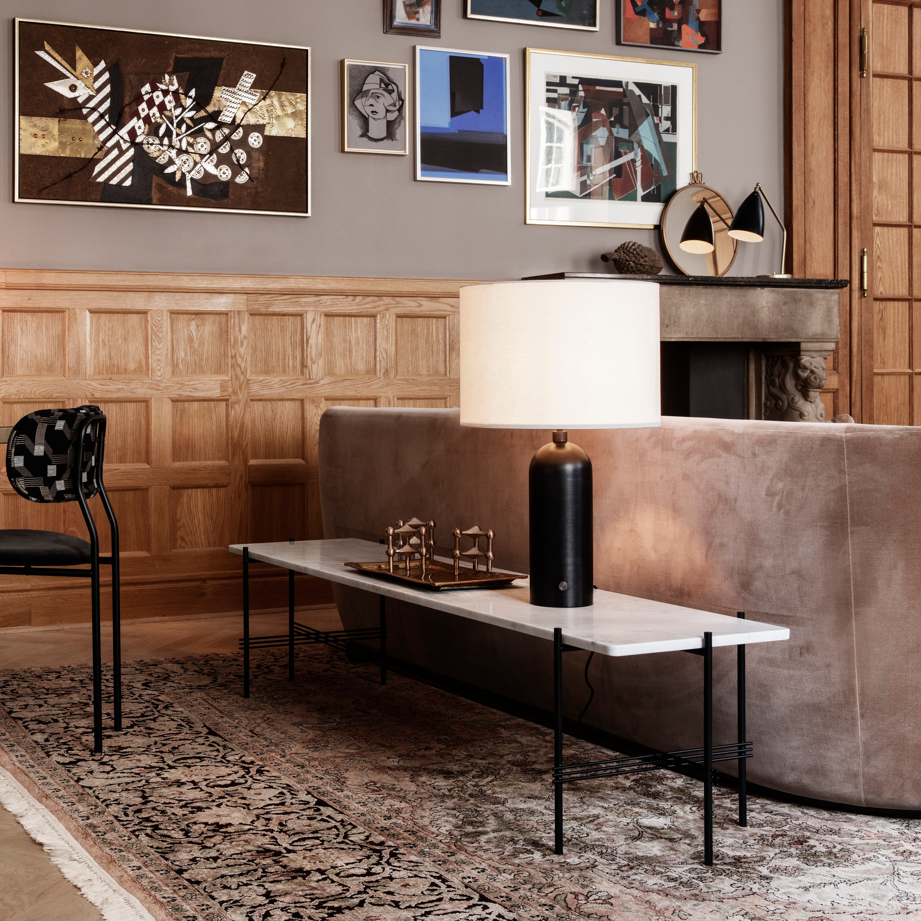 With a sweep of its elegant surface—in lavish marble or a vibrant colored glass—TS Console creates a chic focal point apropos to many a setting. Design duo GamFratesi posit a sculptural framework with slender legs and elegantly spare horizontal detailing, in black or brass-finish steel. As a display for precious objects, a media center or a serving piece for dining, this variation on Gubi’s signature TS series is undeniably a standout.