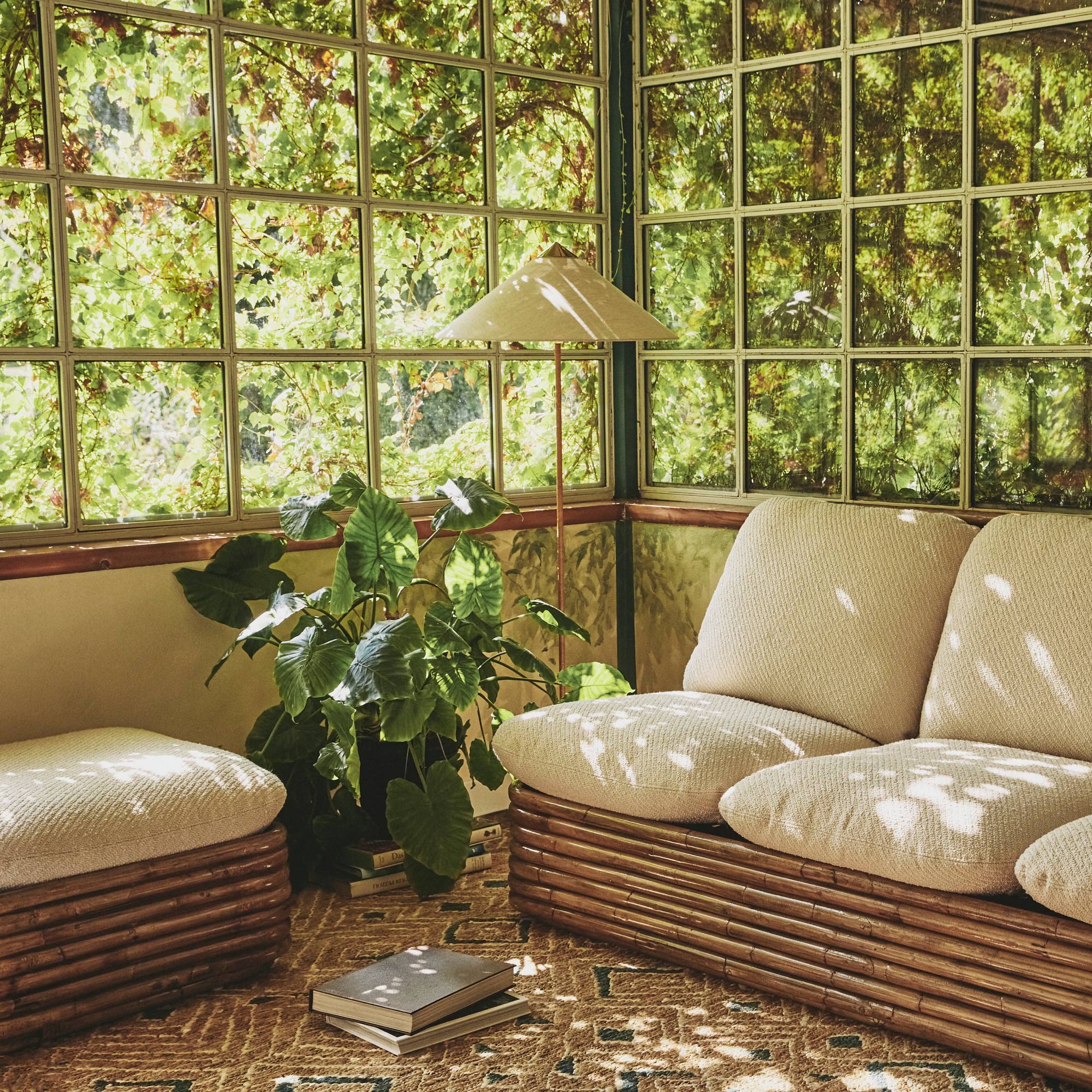A generously sized ottoman accompanies the Bohemian 72 sofa and lounge chair first created 50 years ago by Gabriella Crespi. As a footstool or an extra seat, the versatile piece features the same distinctive stacked-cane base topped with plush cushioning. Coalescing around the Milanese designer' penchant for natural materials, exquisite craft and Eastern influences, the indoor-outdoor range has been revived by Gubi from her original working drawings for a new era of casual luxury.