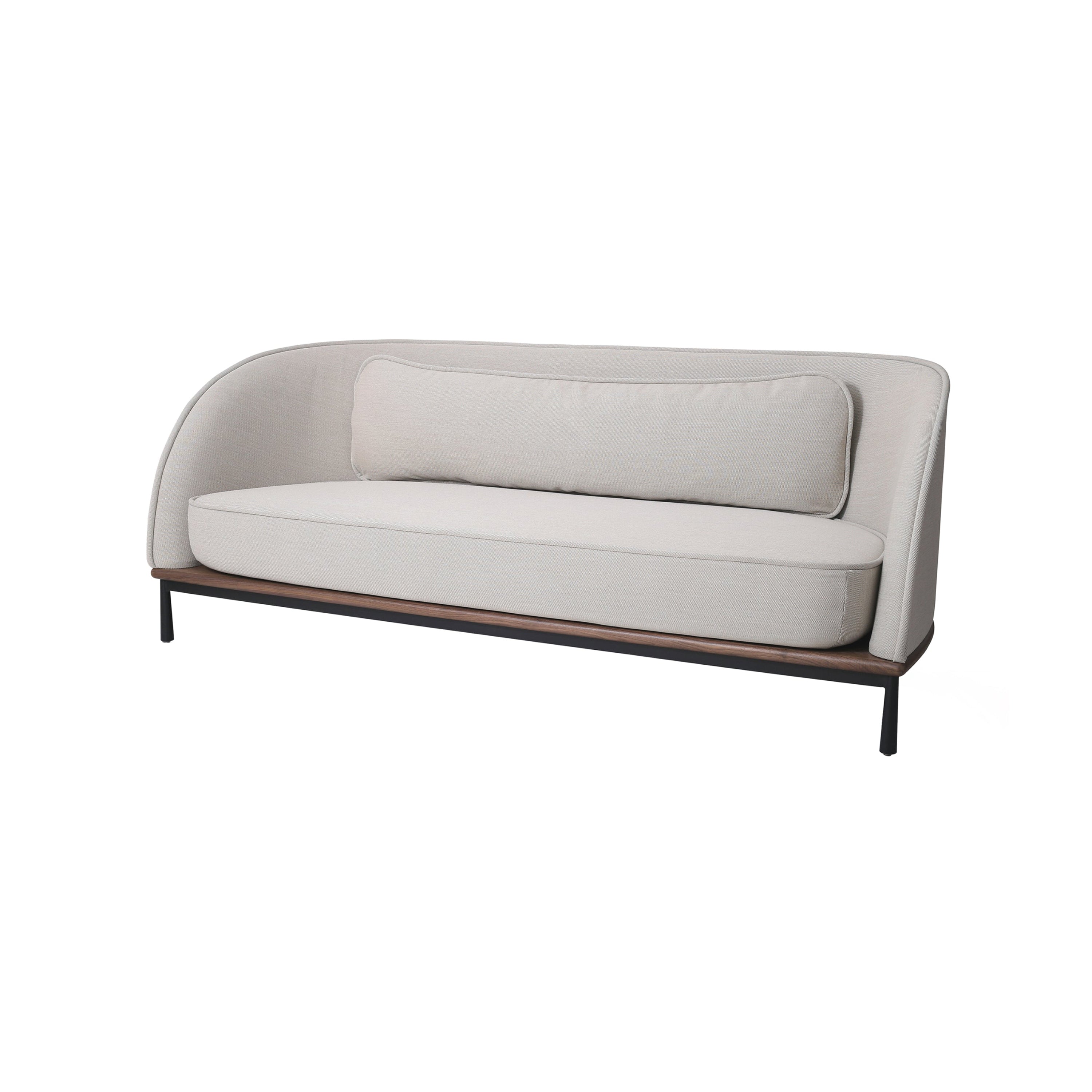 A thick piping sweeps along the edge of this 3-seater, demarcating the contrast between the straight shape outside and the softer sculpted cushioning within. Arc flouts its graceful curves and creates a feeling of comfortable intimacy, a priority for young designer Hallgeir Homstvedt, for seating that seems homelike even in contract environs. The shell, seat pad and backrest of the sofa are available with upholstery in fabric or leather and sit on a solid walnut or ash base with black steel feet for a crisp finish.
