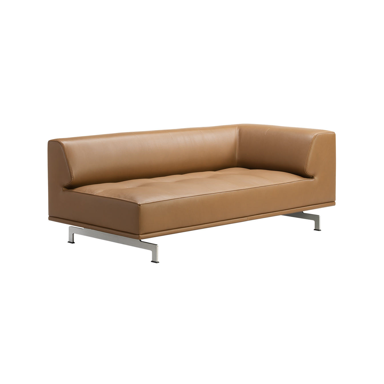 The Delphi Elements End Module 180 offers generous seating, designed for both standalone use and seamless integration into larger configurations. Built with a wooden inner frame, nozag springs, cold-cured foam, and a down-foam granulate duvet, it provides enduring comfort. Upholstery options include fabric or leather, supported by a base available in brushed aluminum or solid wood. As part of Fredericia’s 14-piece modular system, it offers flexibility for various arrangements.