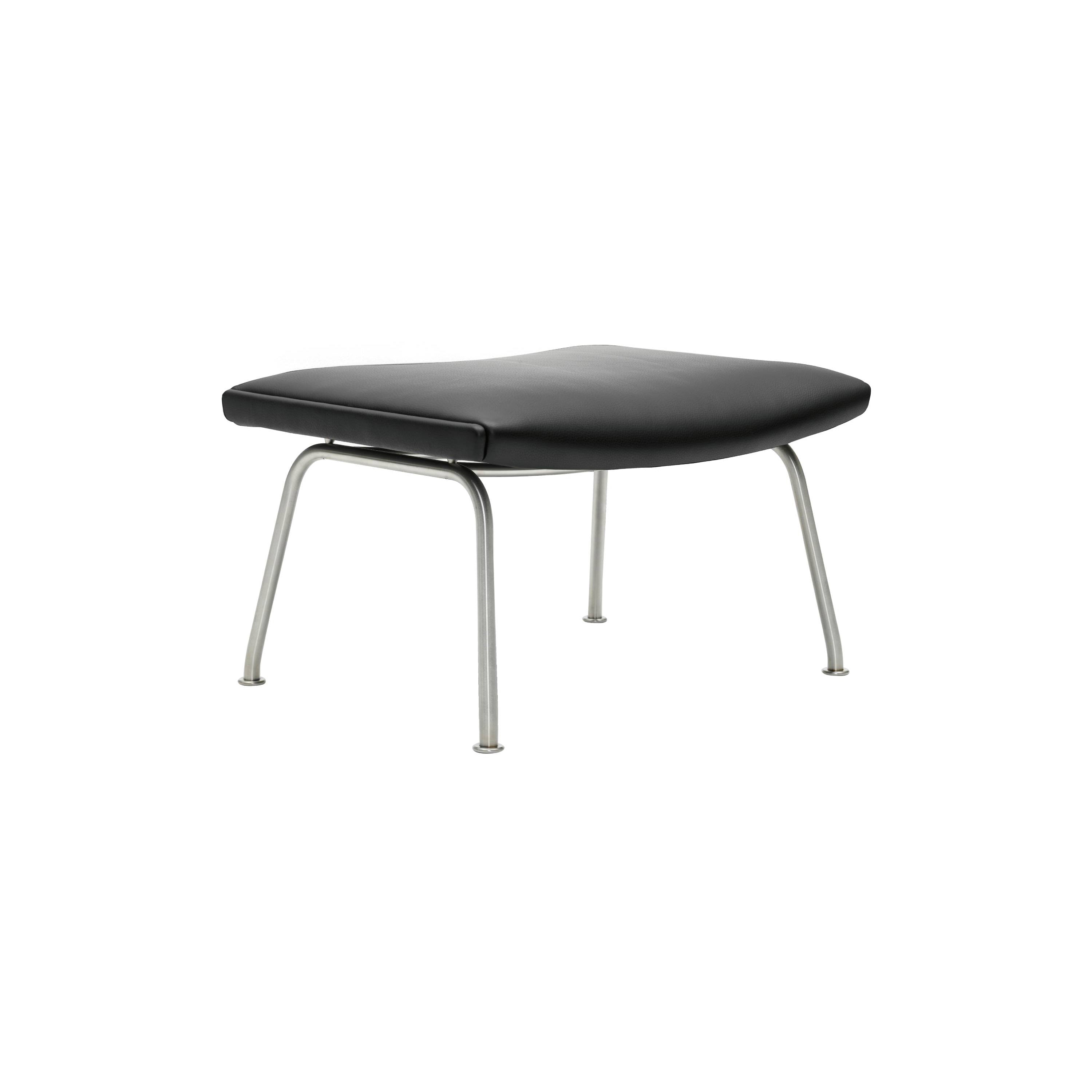 Hans J. Wegner designed this sleek footrest as an obvious match to his iconic CH445 Wing Chair and CH468 Oculus Chair (also at A+R). CH446 Footstool works equally well on its own or in groups, sturdily constructed with a solid beech frame and stainless steel legs that nonetheless impart a light appearance. Debuting in 1960 along with the iconic seating, it's available upholstered in either a fine fabric or leather selection from Danish maker Carl Hansen & Søn.