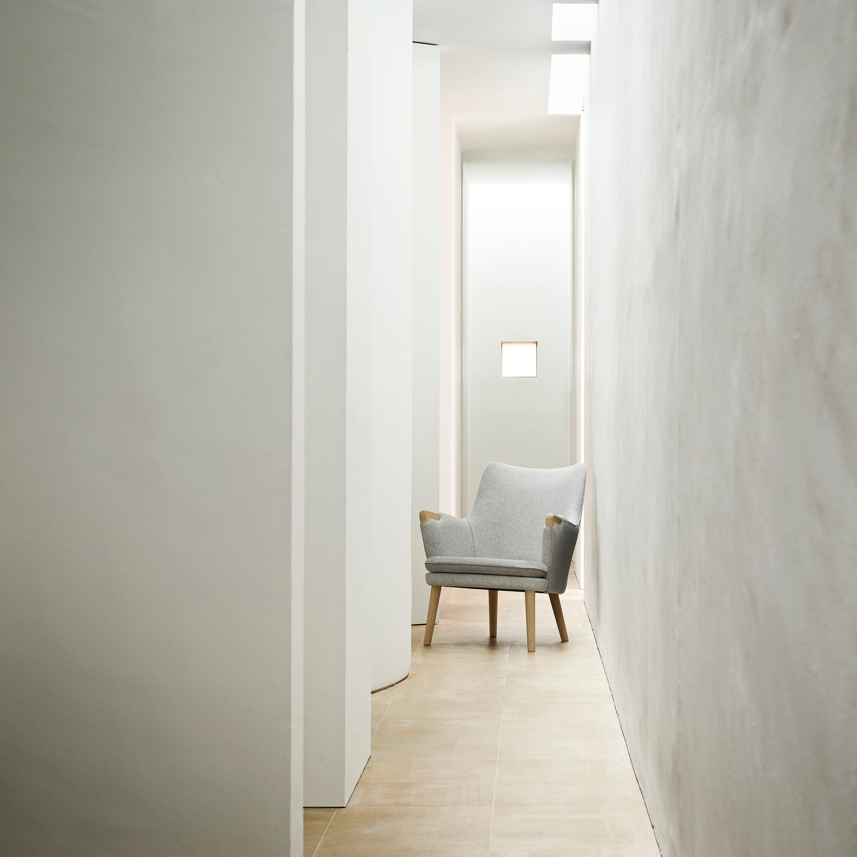 With its slender frame and sculptural look, Hans J. Wegner’s lounge chair is a testament to the legendary Danish designer’s unique understanding of woodworking and upholstery. Created in 1952, CH71 shows all the hallmarks of his refined aesthetic, including unstinting craftsmanship in the cushioned curves that wrap flawlessly around a slim, angular frame. With an array of textiles to choose from, the legs and handles are available in complementary oak and walnut finishes.
